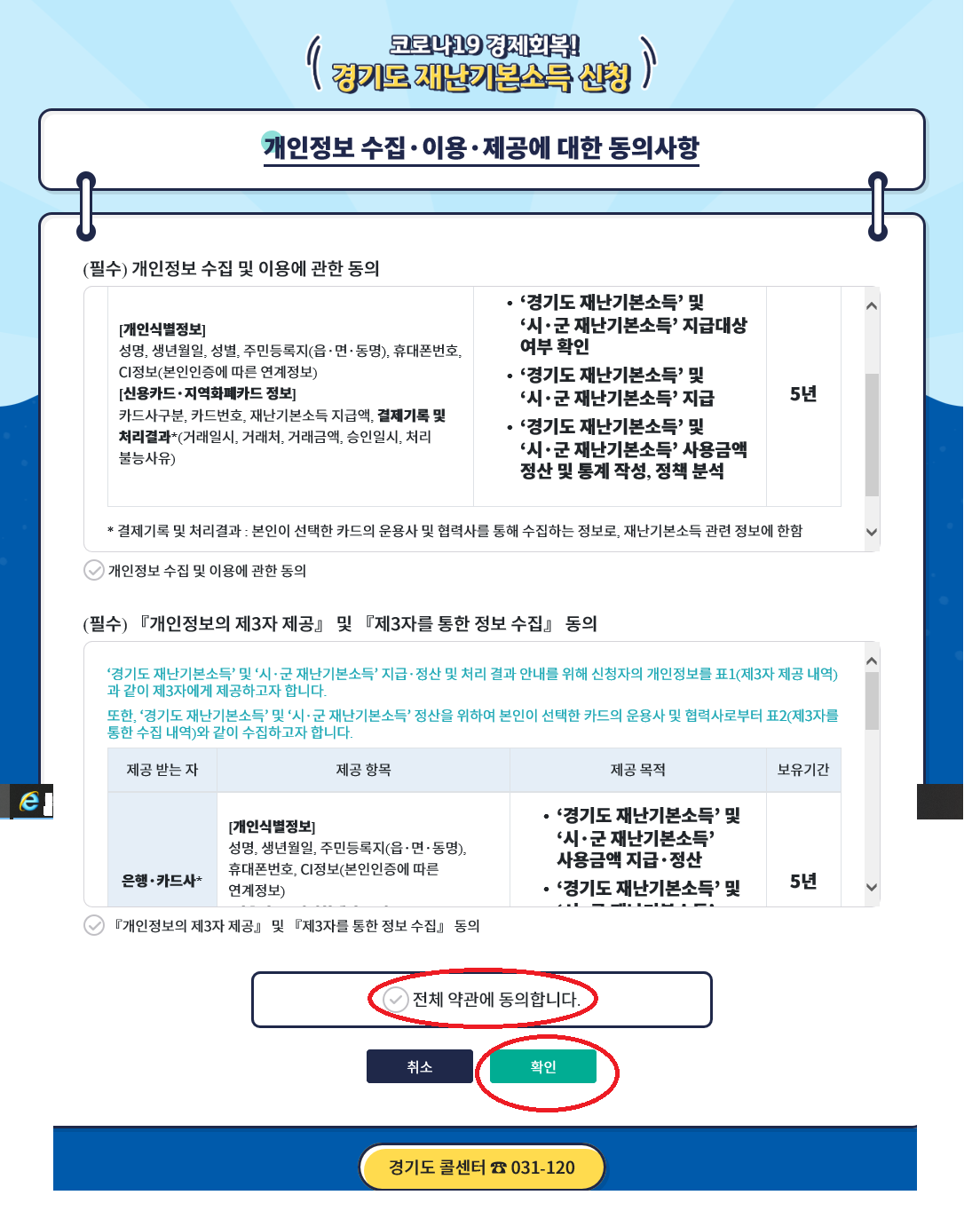 3. 개인정보 수집 이용 제공에 대한 동의 선택후 확인