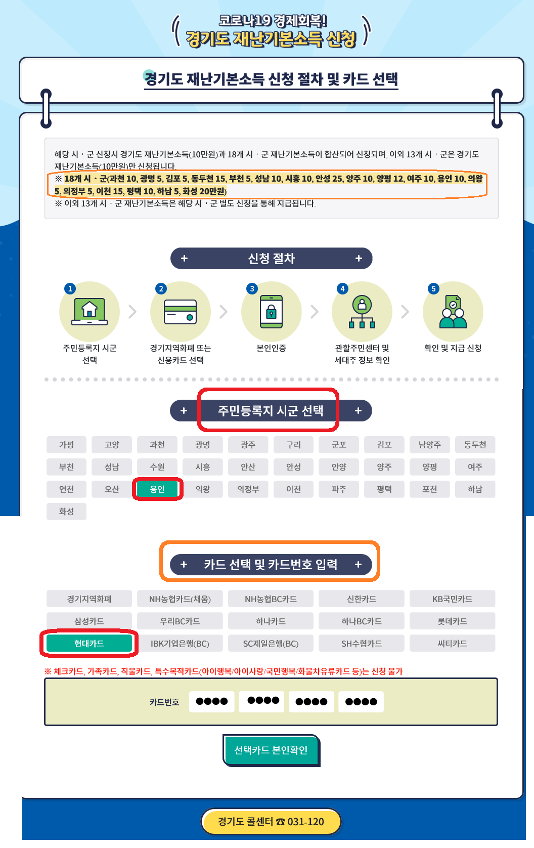 3. 본인 명의의 경기지역화폐 또는 신용가트로 신청하면됩니다.