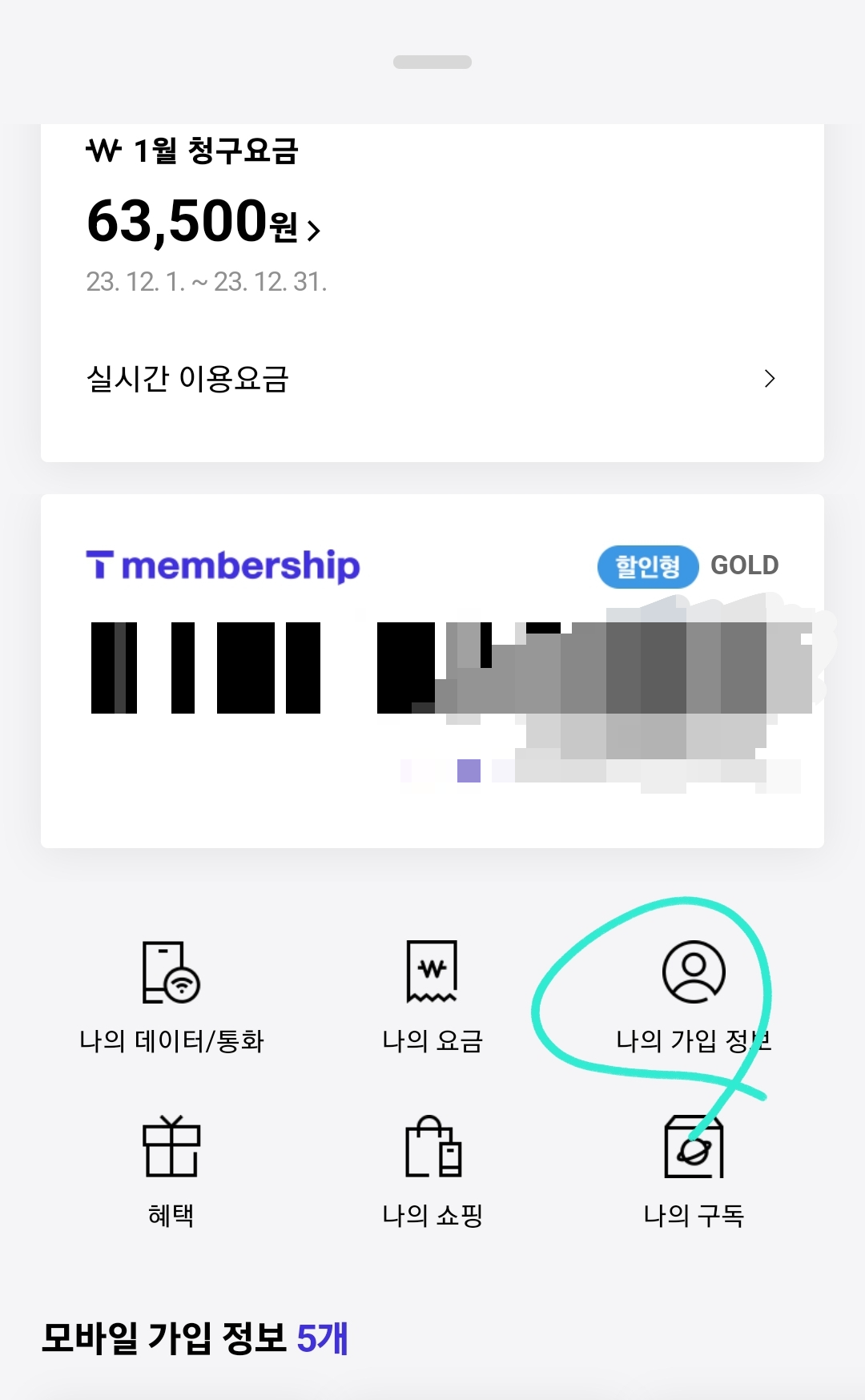 3. 그럼 "나의가입정보" 메뉴를 선택합니다.