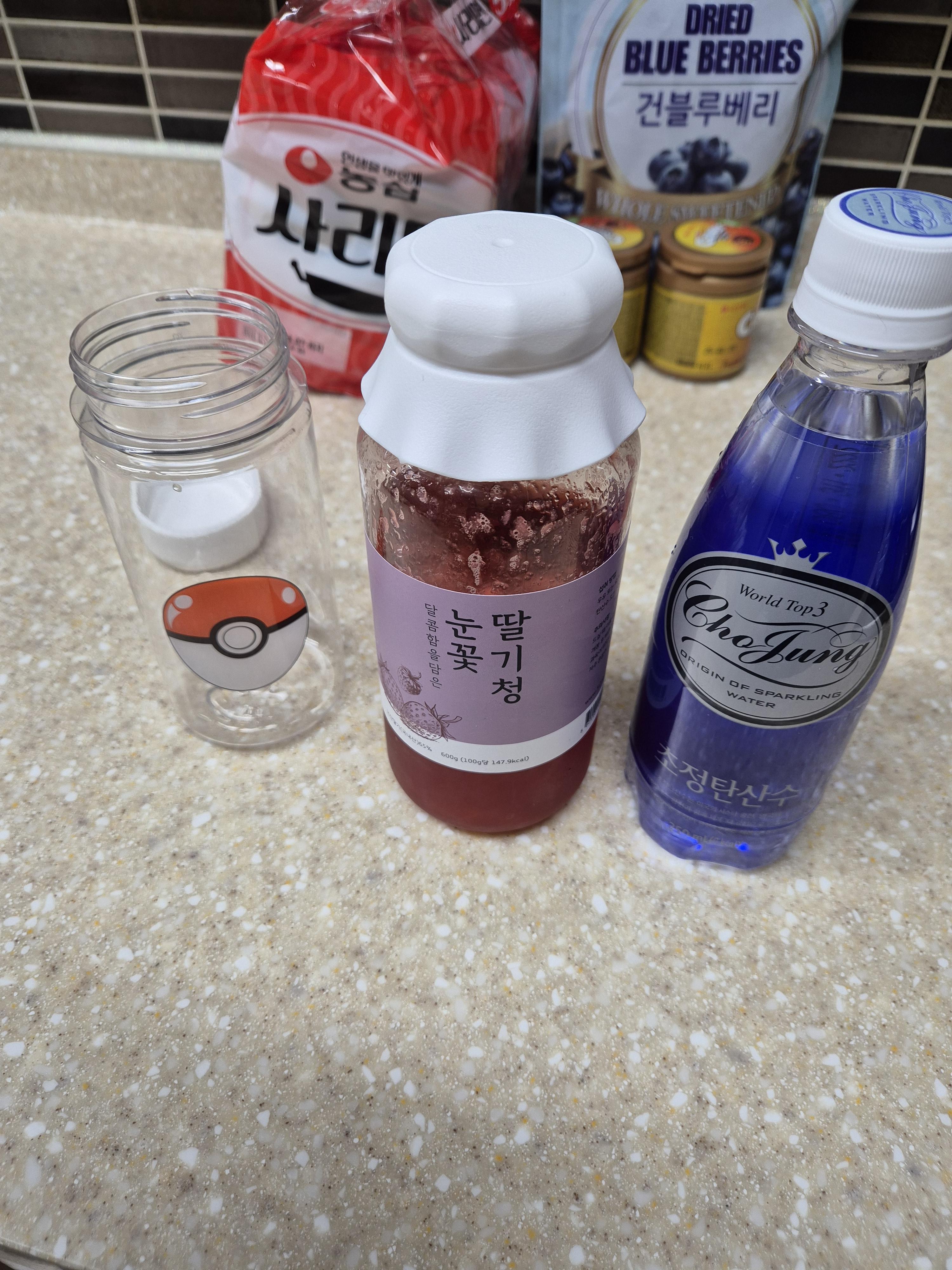 딸기청 자체가 많이 달기 때문에 굳이 사이다랑 섞을 필요가 없어요.