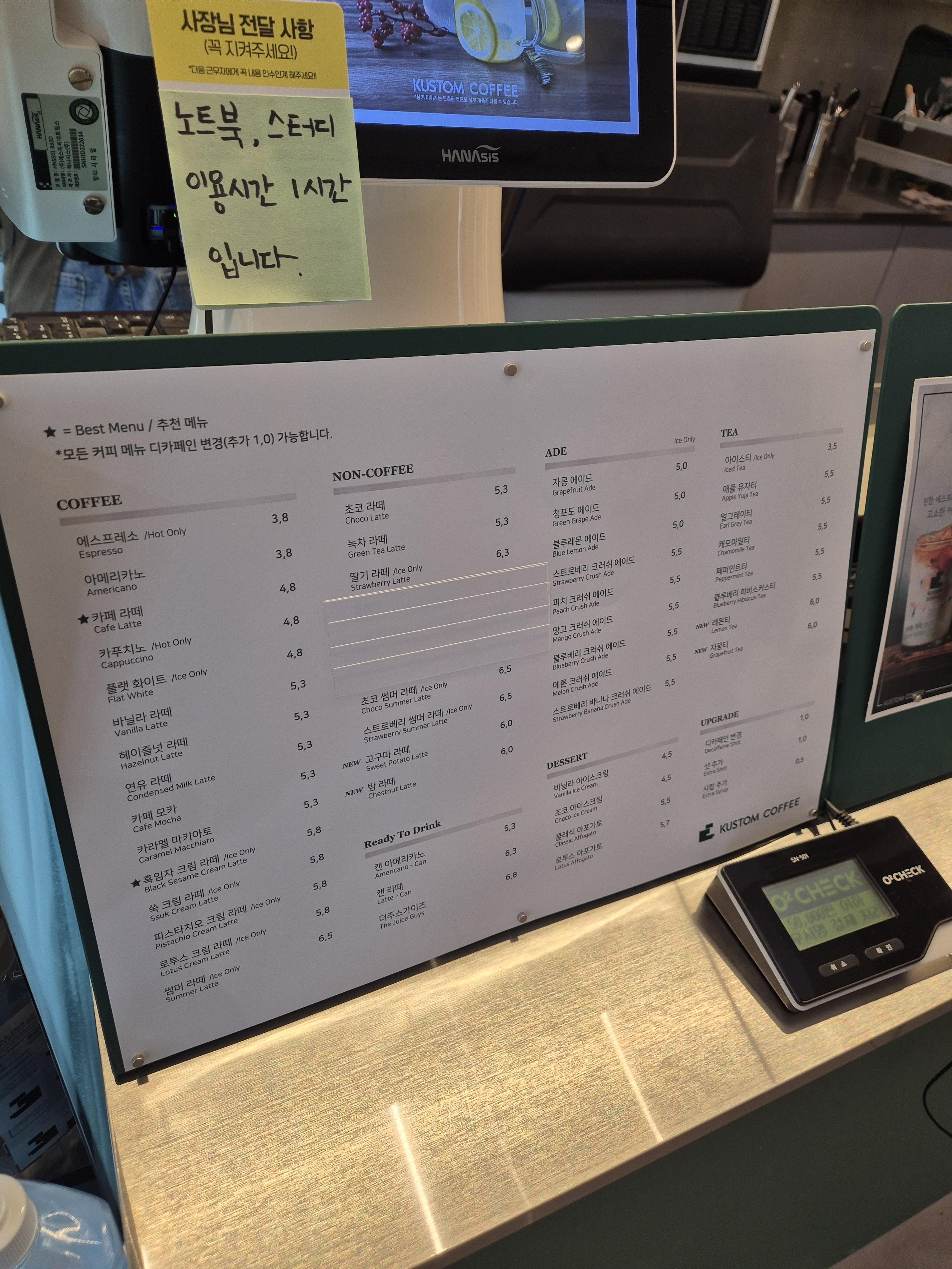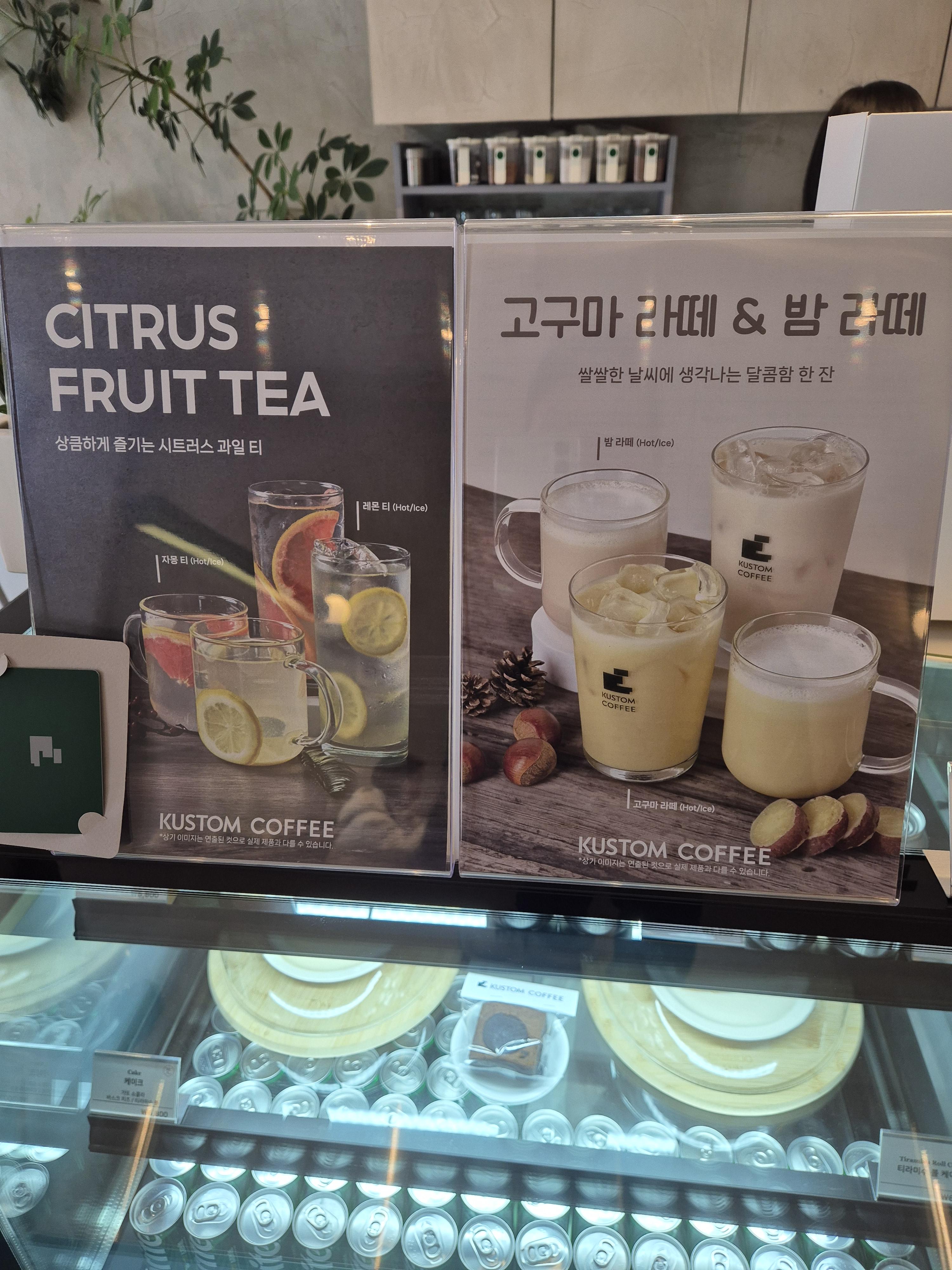 관저동 커스텀 커피 메뉴판