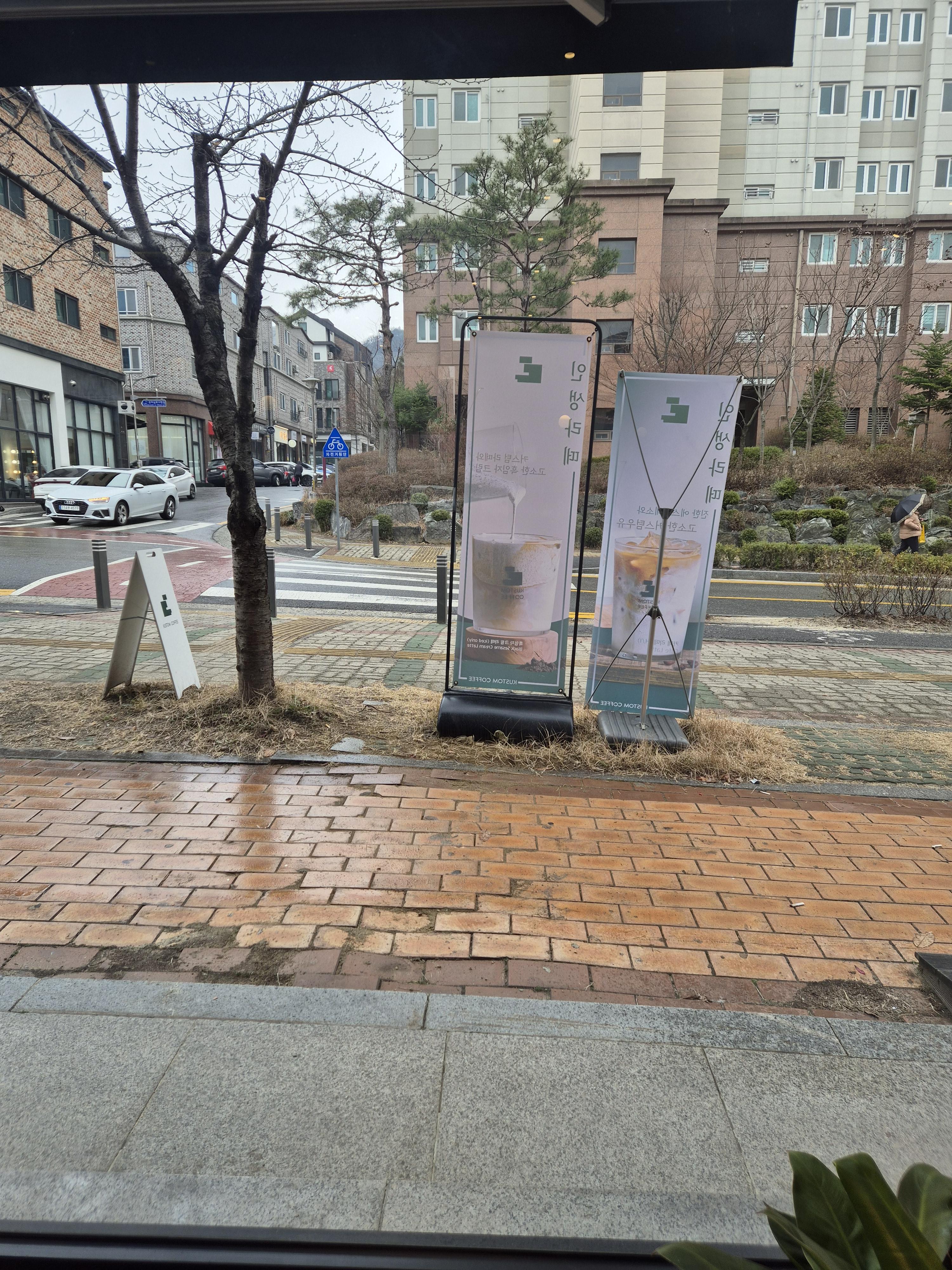 이게 관저동 커스텀 커피 쇼윈도 뷰입니다.