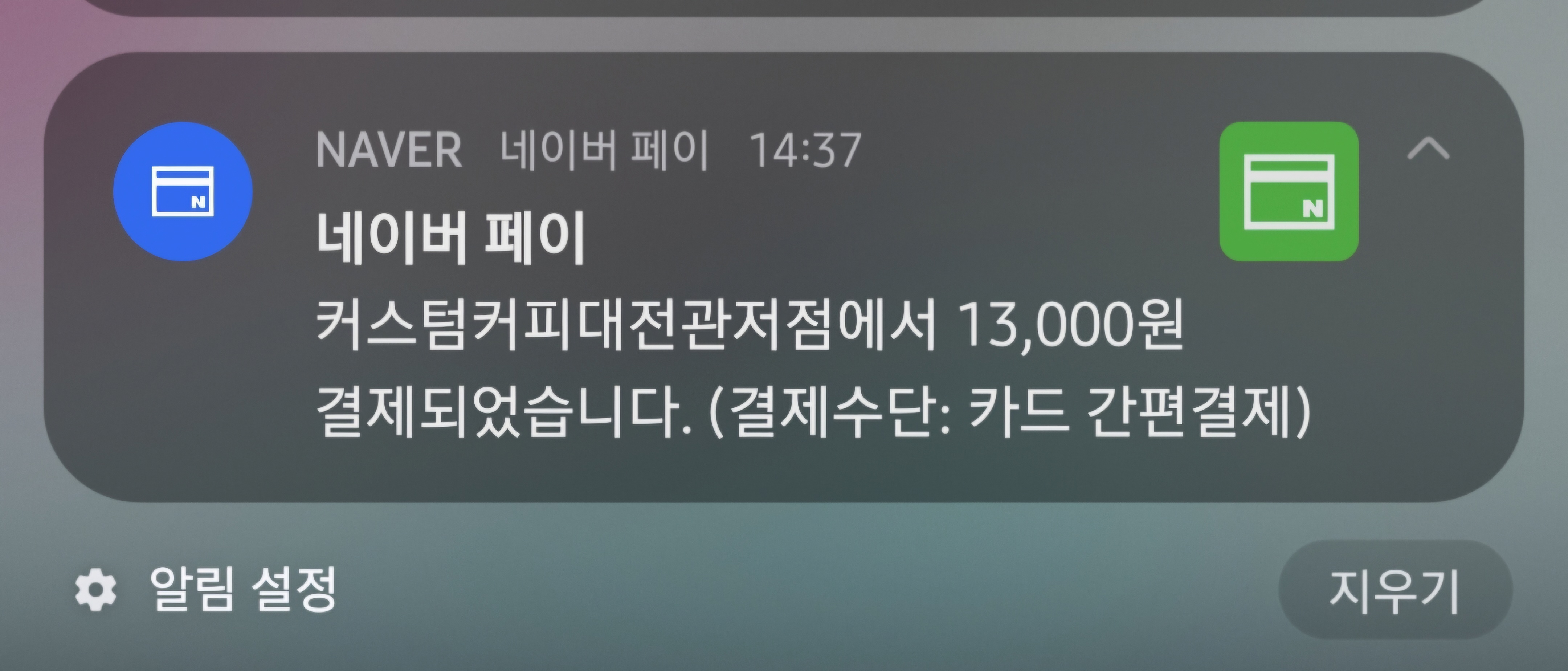 2잔 주문하고 ,13000원 결제 하였습니다.
