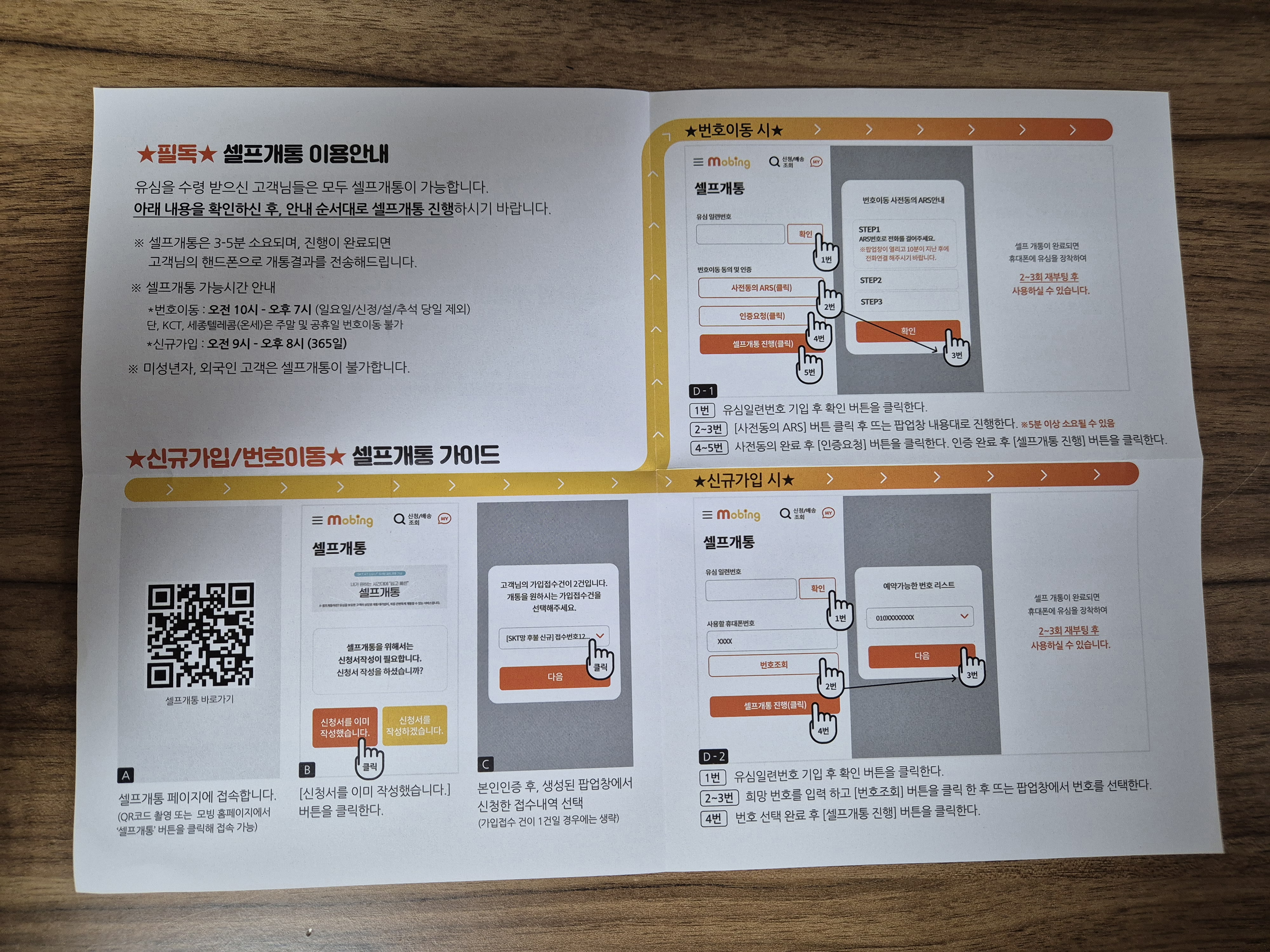 유심과 같이 통봉된 모빙 가입신청 고객안내문을 읽어 봅니다.