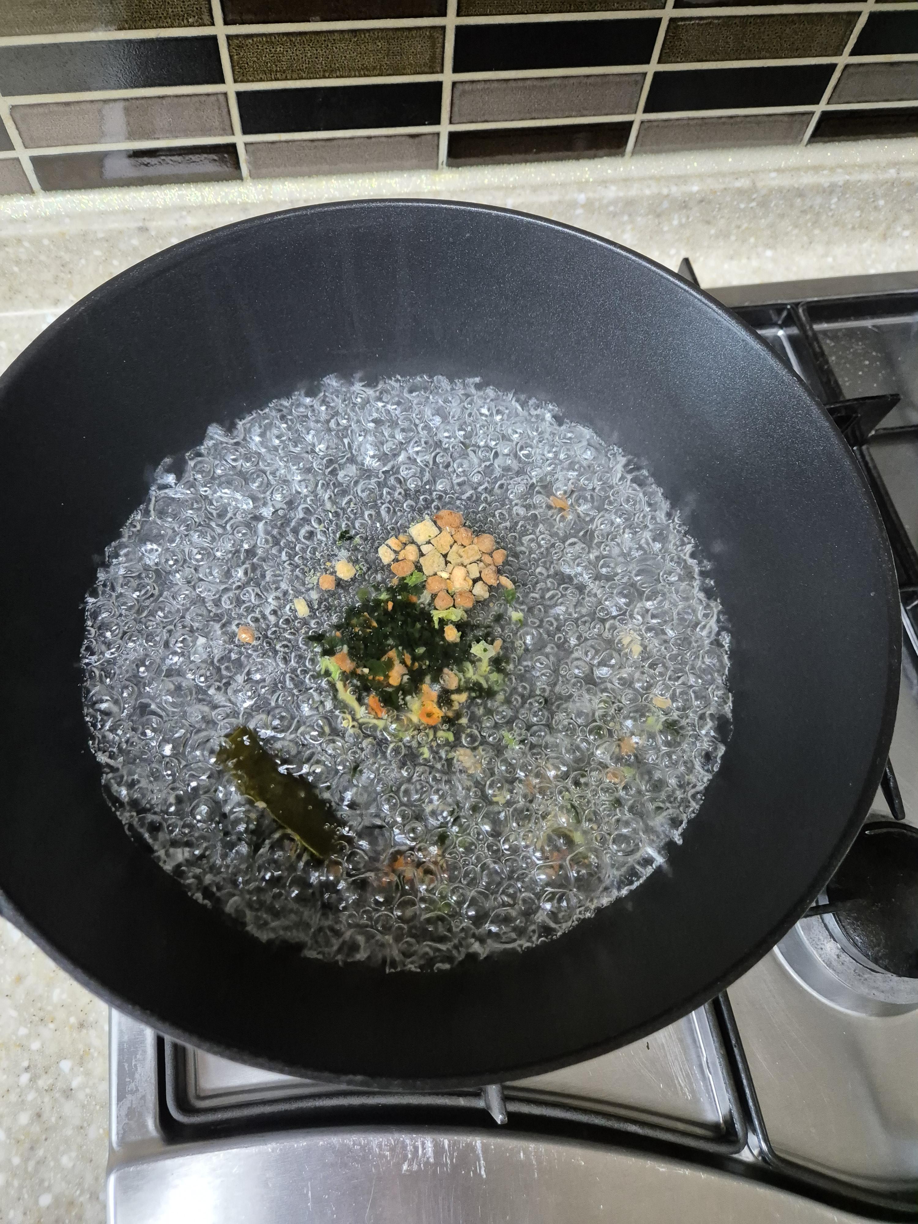 3. 물이 끓기 시작하면 건더기 스프를 넣어 줍니다.