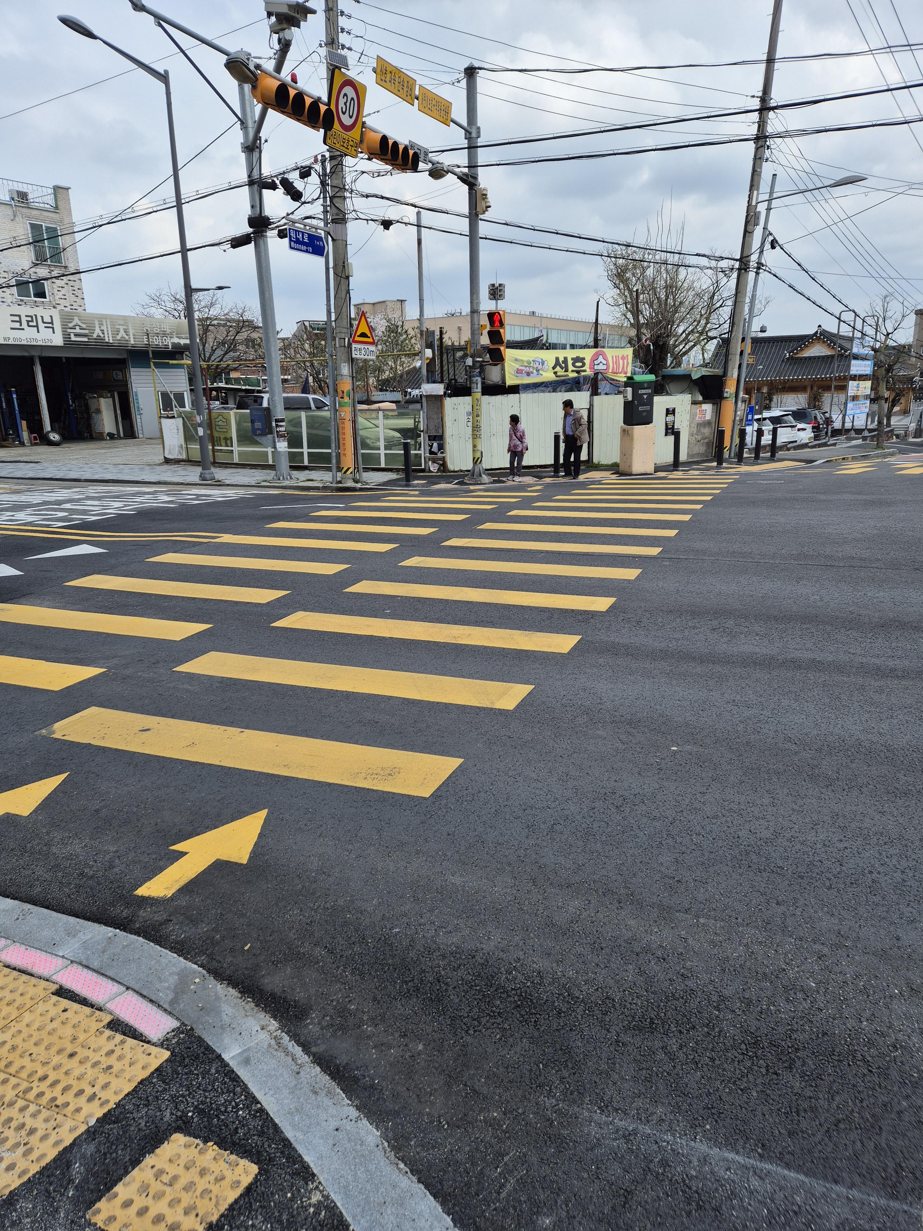 주차는 진잠초등학교에 해 놓고 횡단보도를 건너갔습니다.