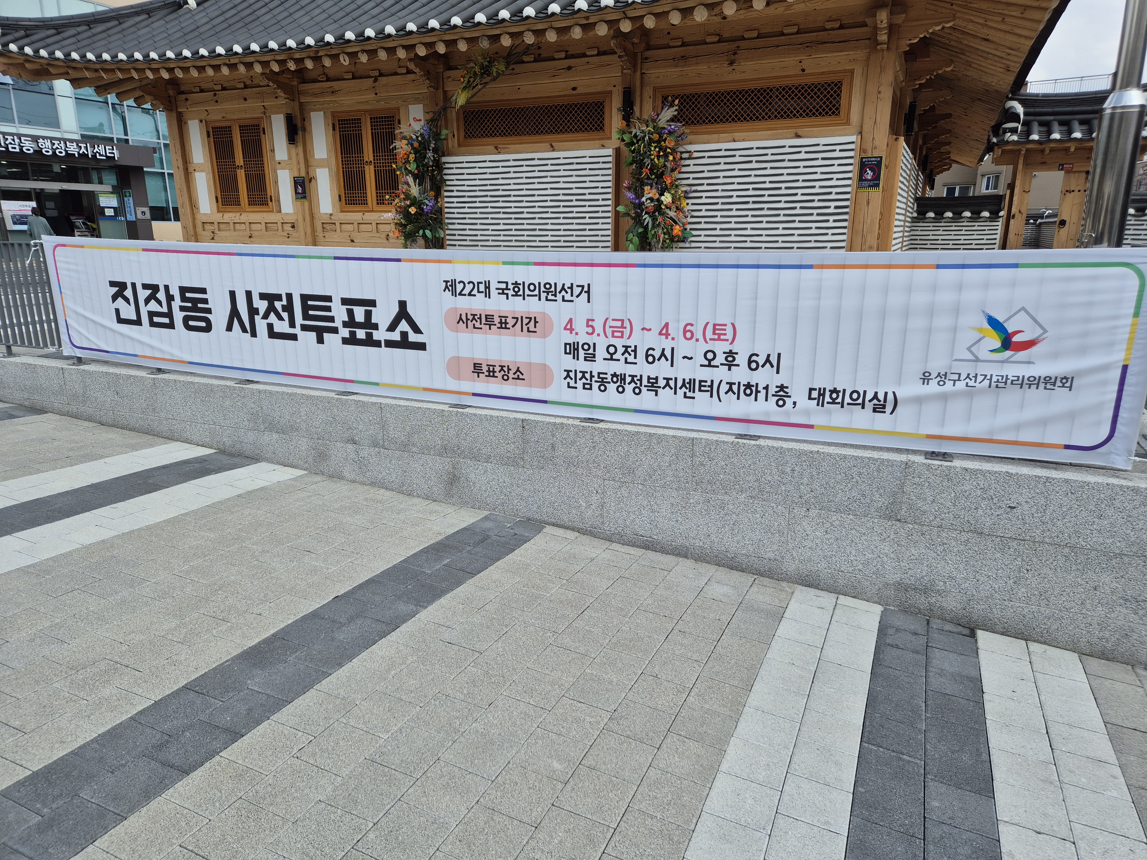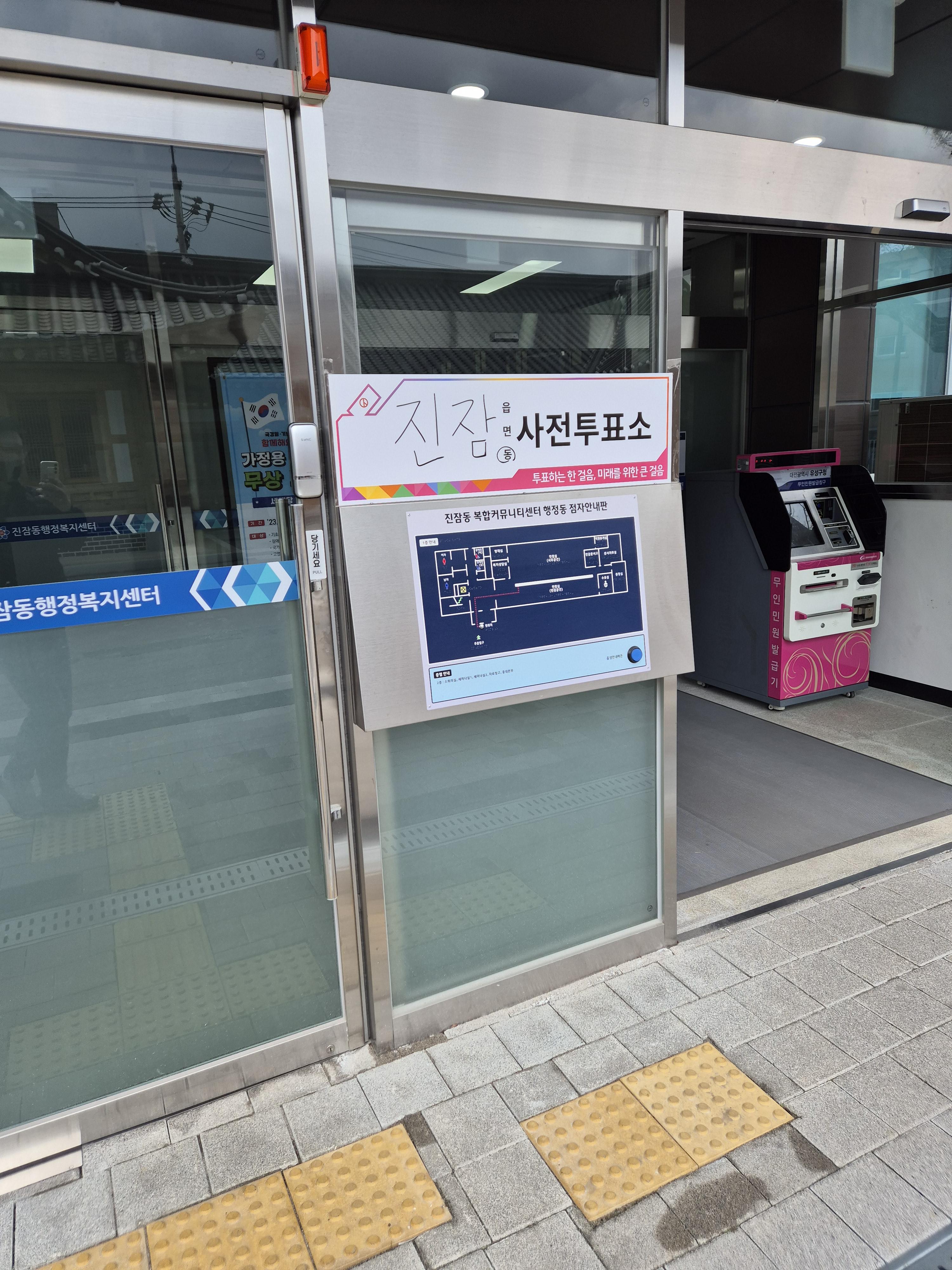 진잠동 주민센터 앞에 가니 진잠동 사전 투표소라고 되어 있네요.