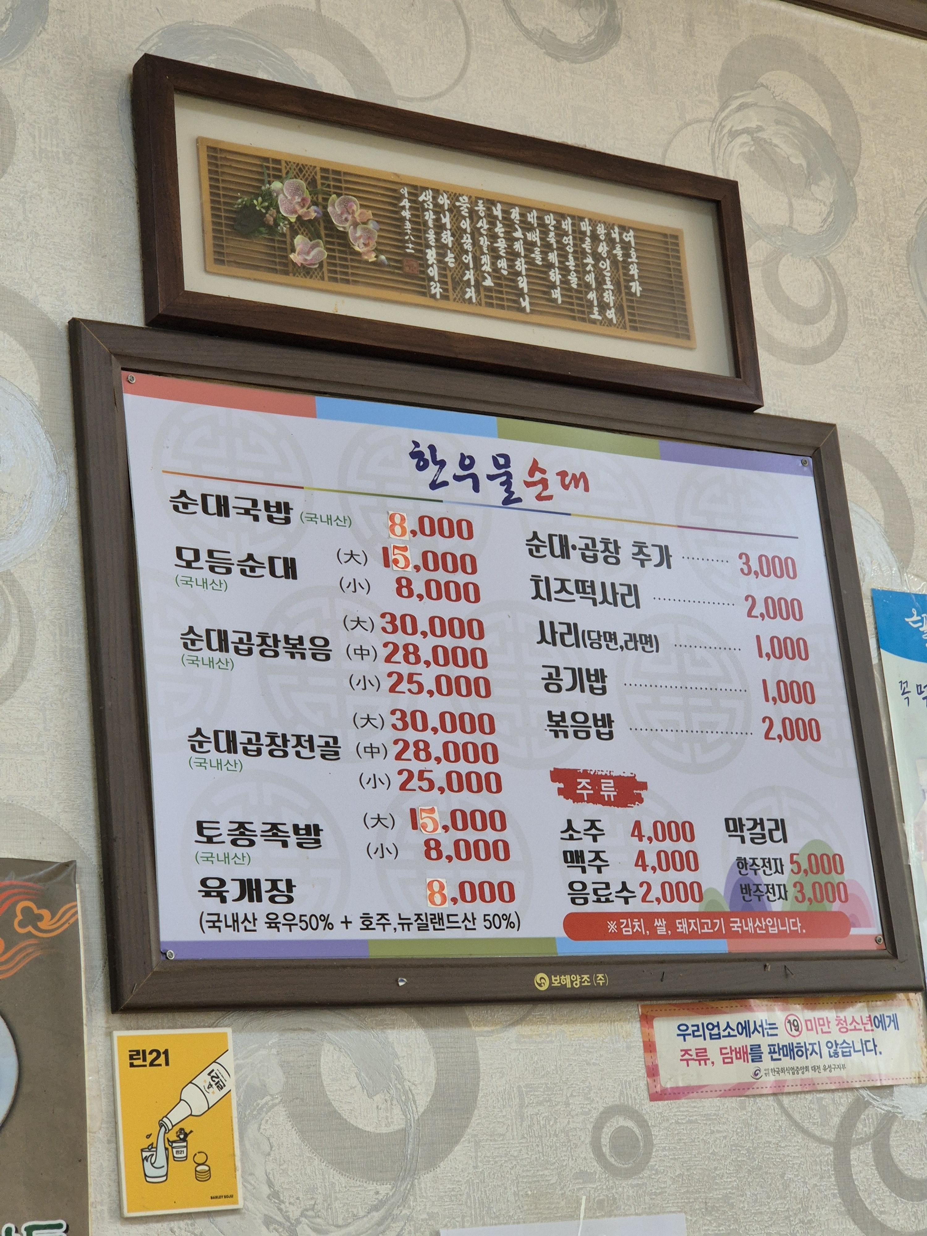 대정동 순대국밥 맛집 한우물 순대는 매주 일요일은 쉬는 날입니다.