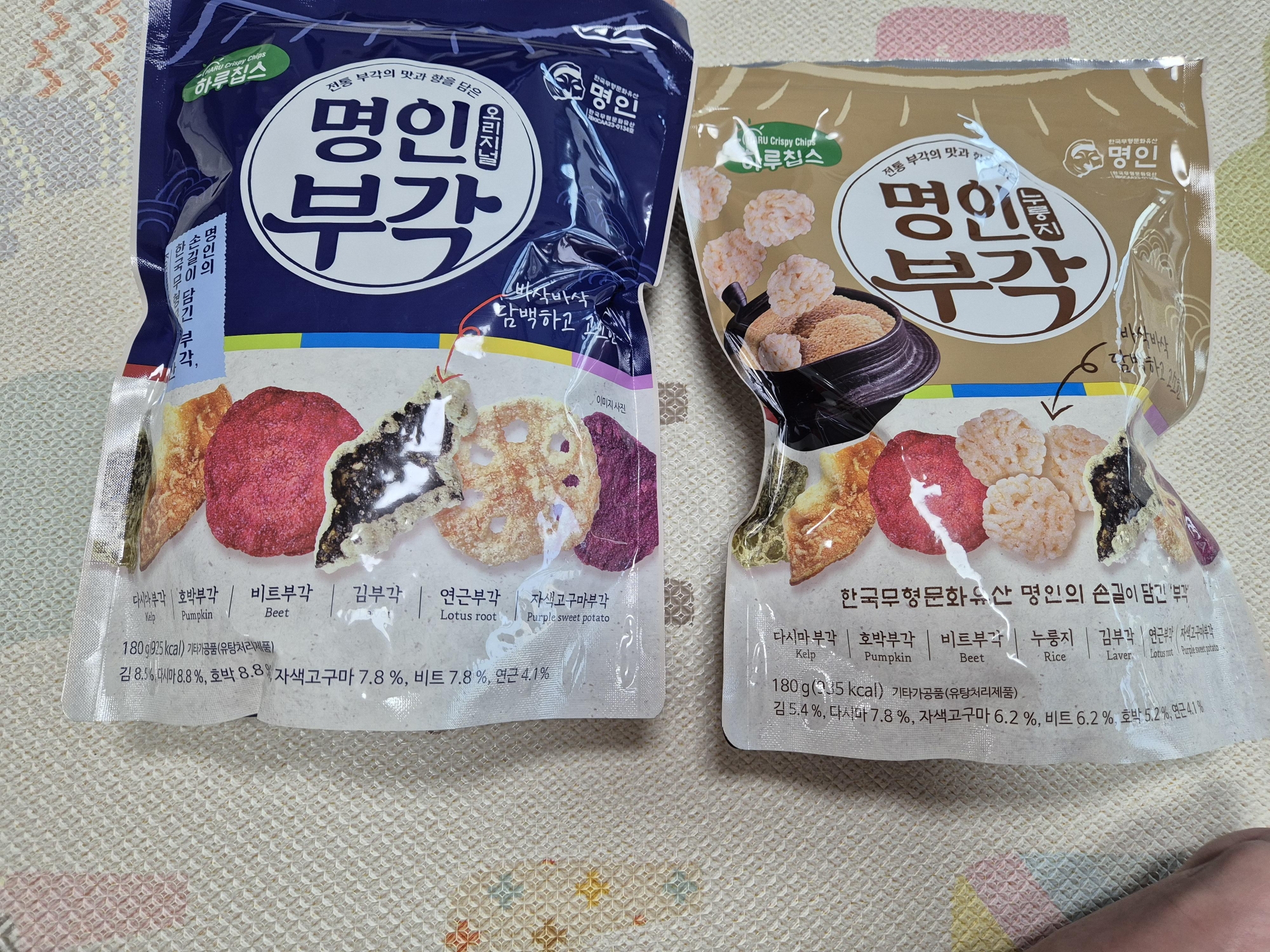 명인부각 오리지널 그리고 누룽지 다른 것은 누룽지가 들어갔냐? 안 들어갔냐? 차이입니다.
