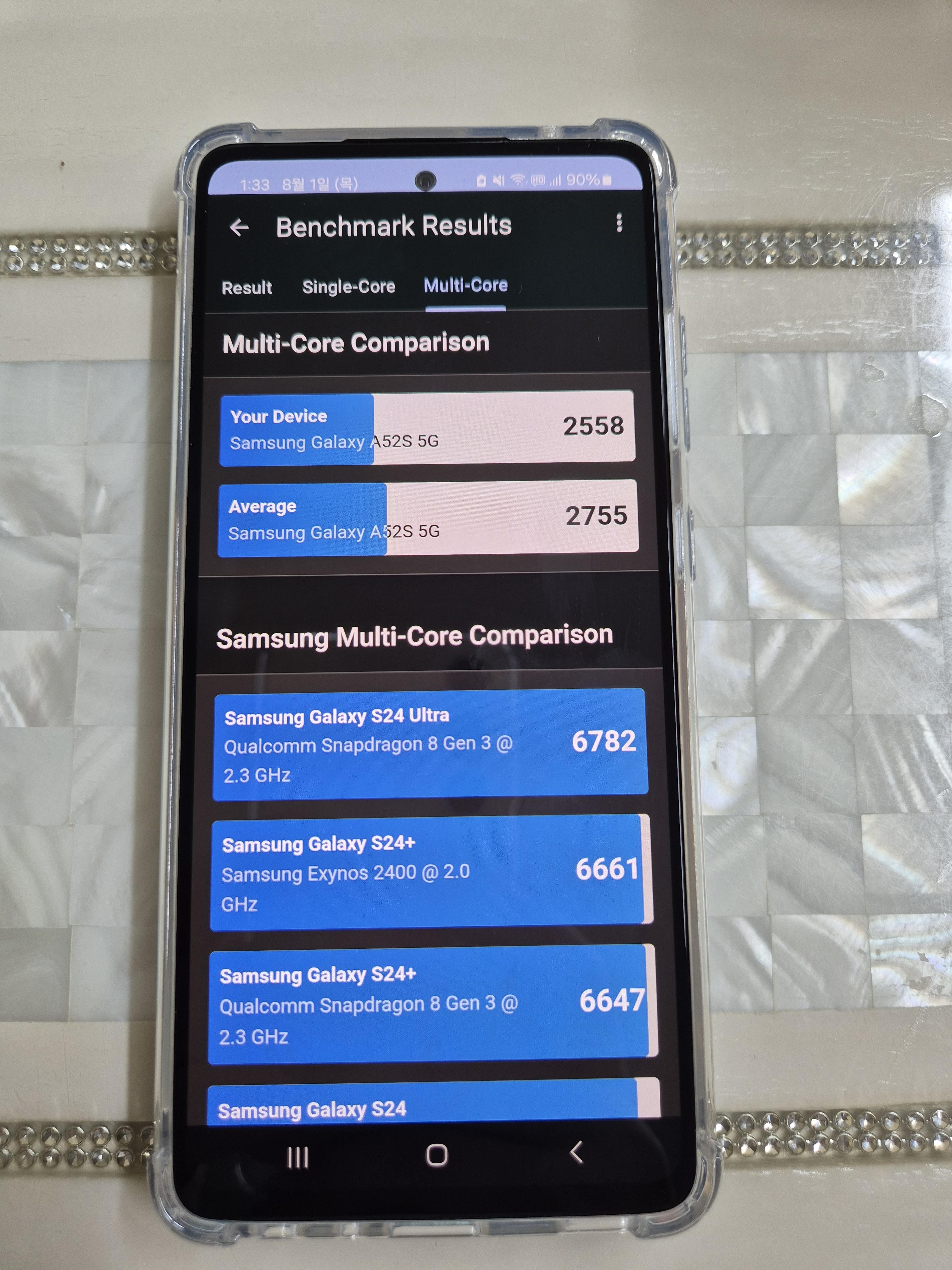 갤럭시A52S 절전모드 긱벤치6 멀티점수가 그래도 A24보다는 높습니다.