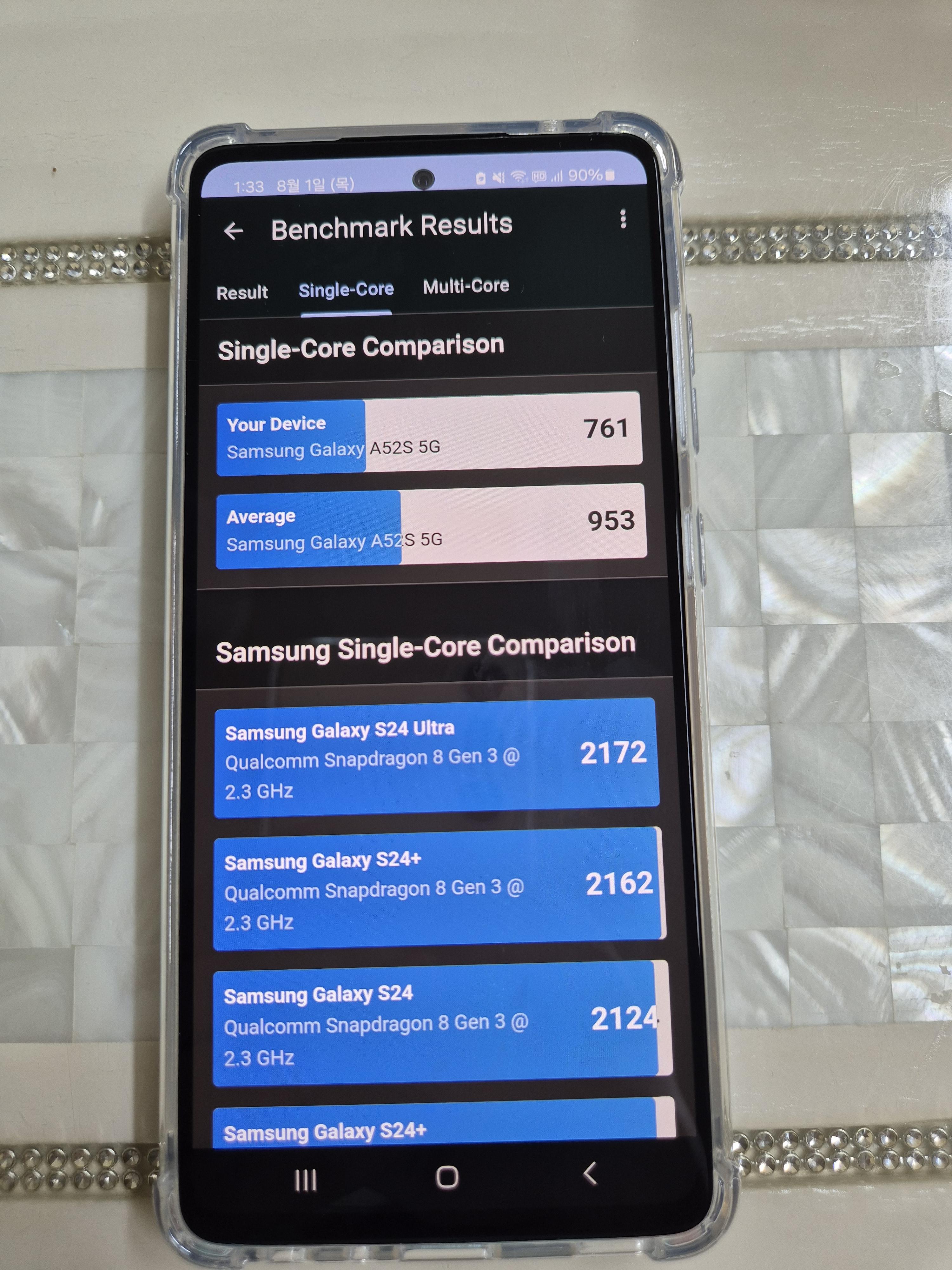 딱, 갤럭시A24 정도로 점수가 나옵니다. ㅎㅎㅎ
