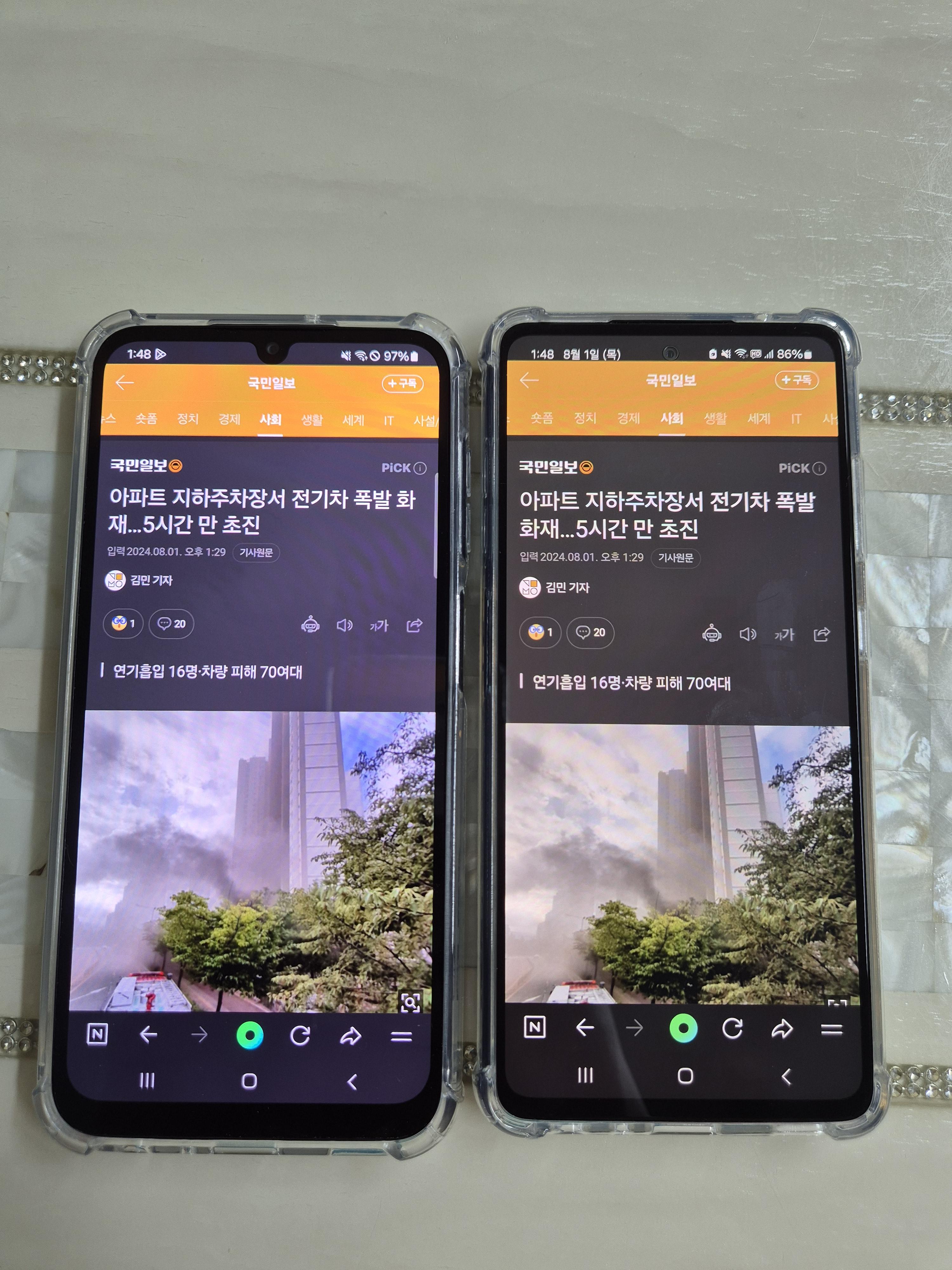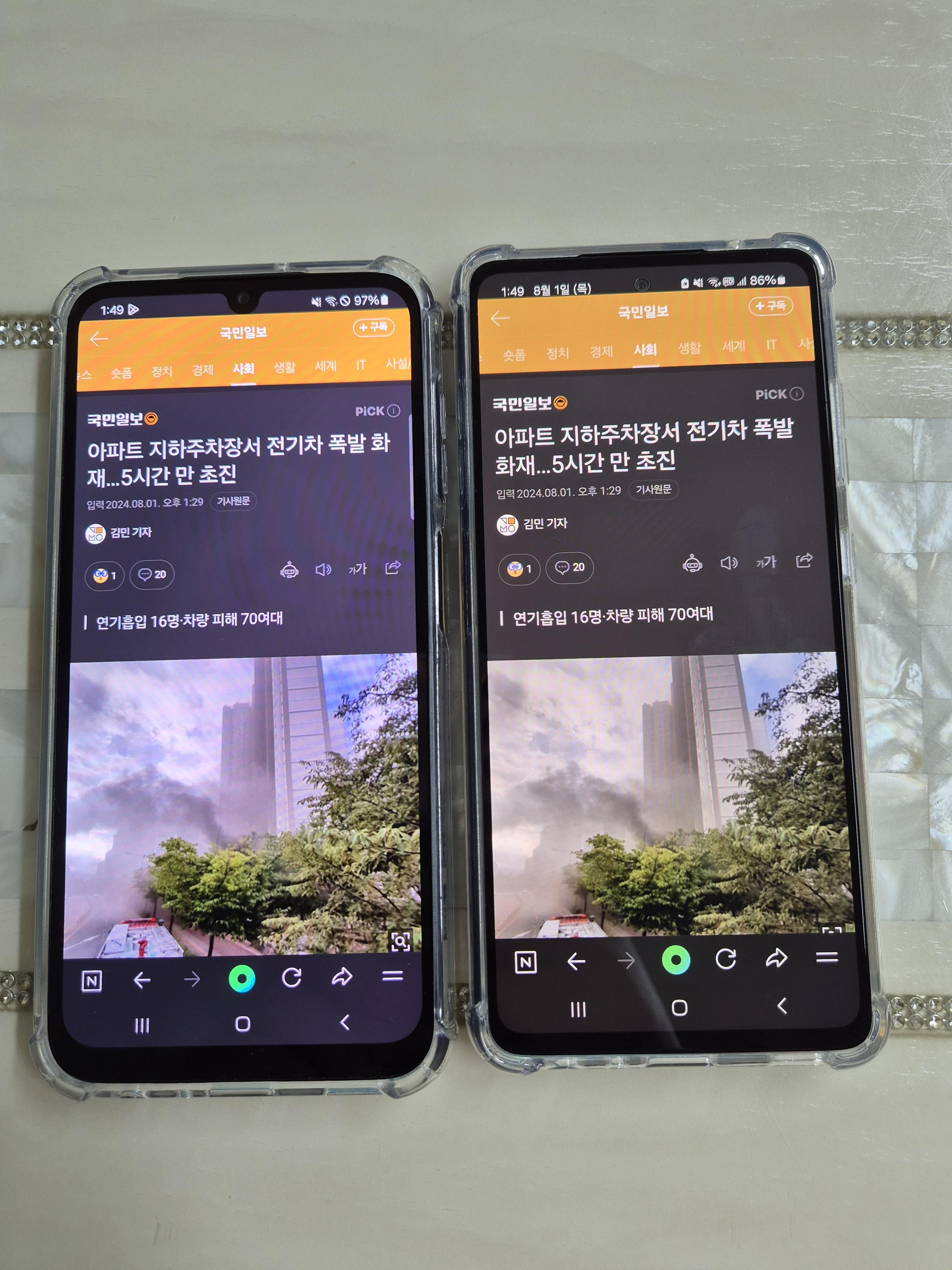 액정 품질이나 밝기 선명도 모두 제 눈에는 갤럭시A24가 더 좋았습니다.