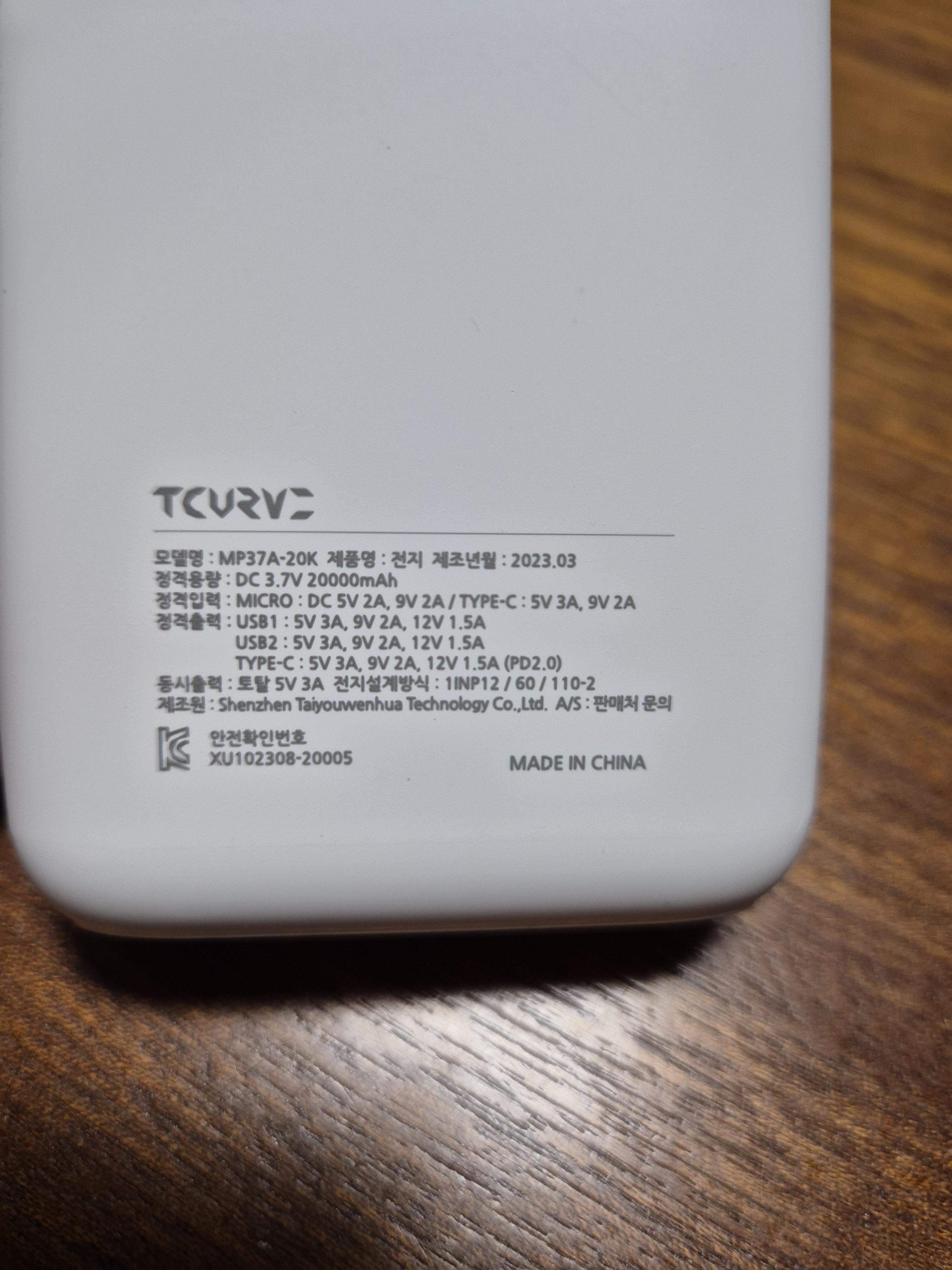 제가 구매한 티커브 보조베터리는 18와트 출력이 가능하기때문에,