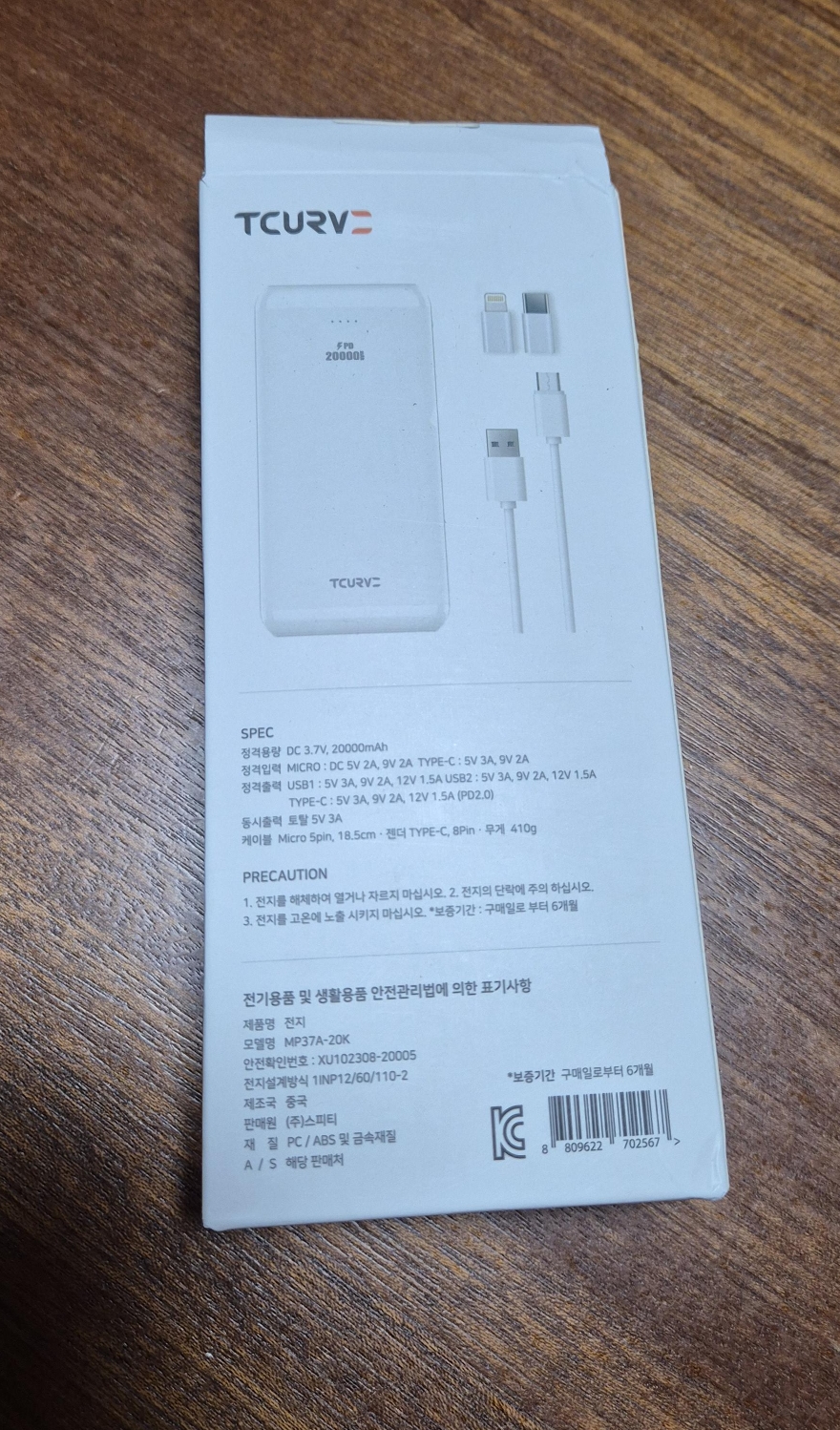20000mAh 규격의 베터리로 구매를 하였으며,