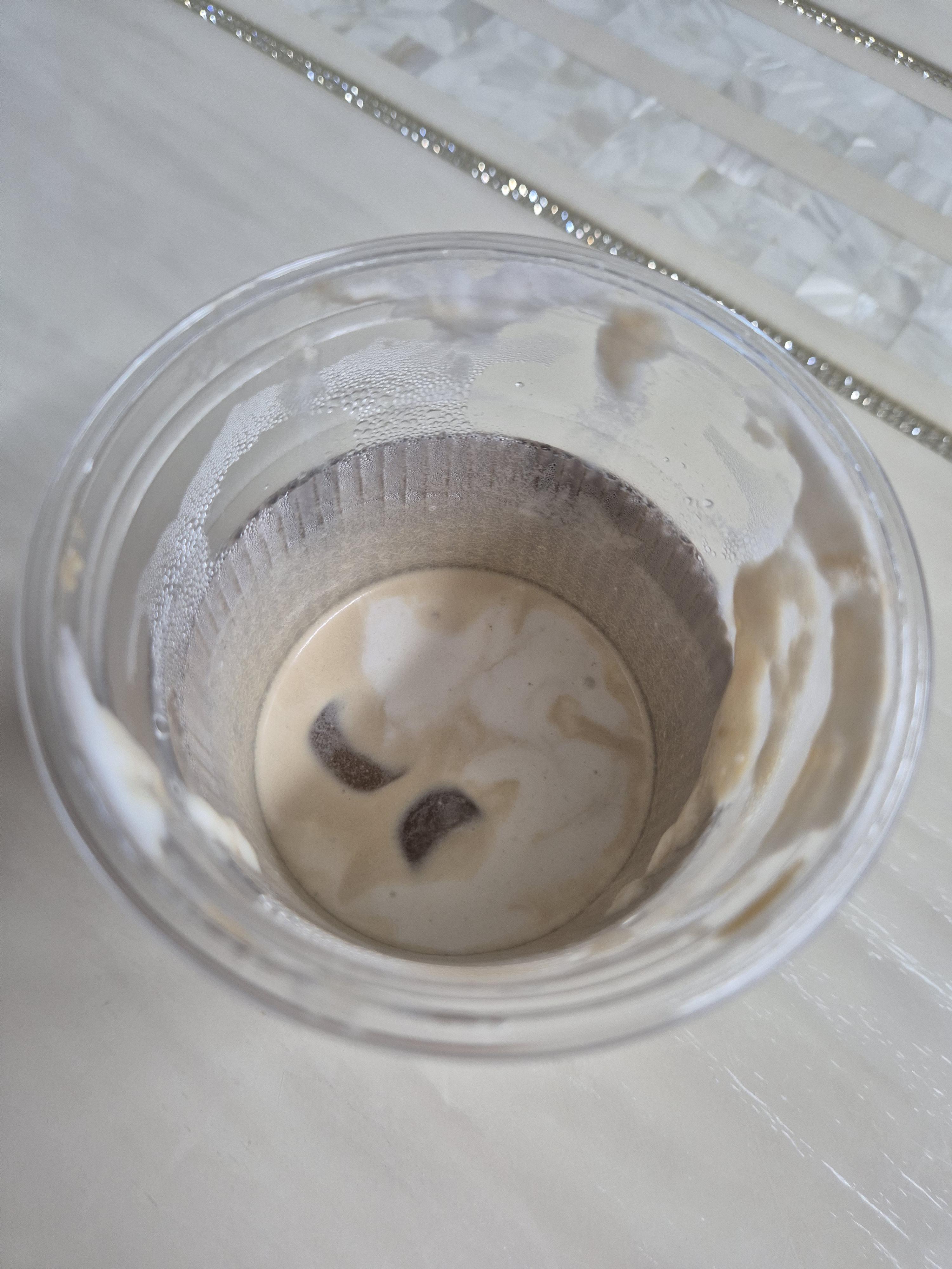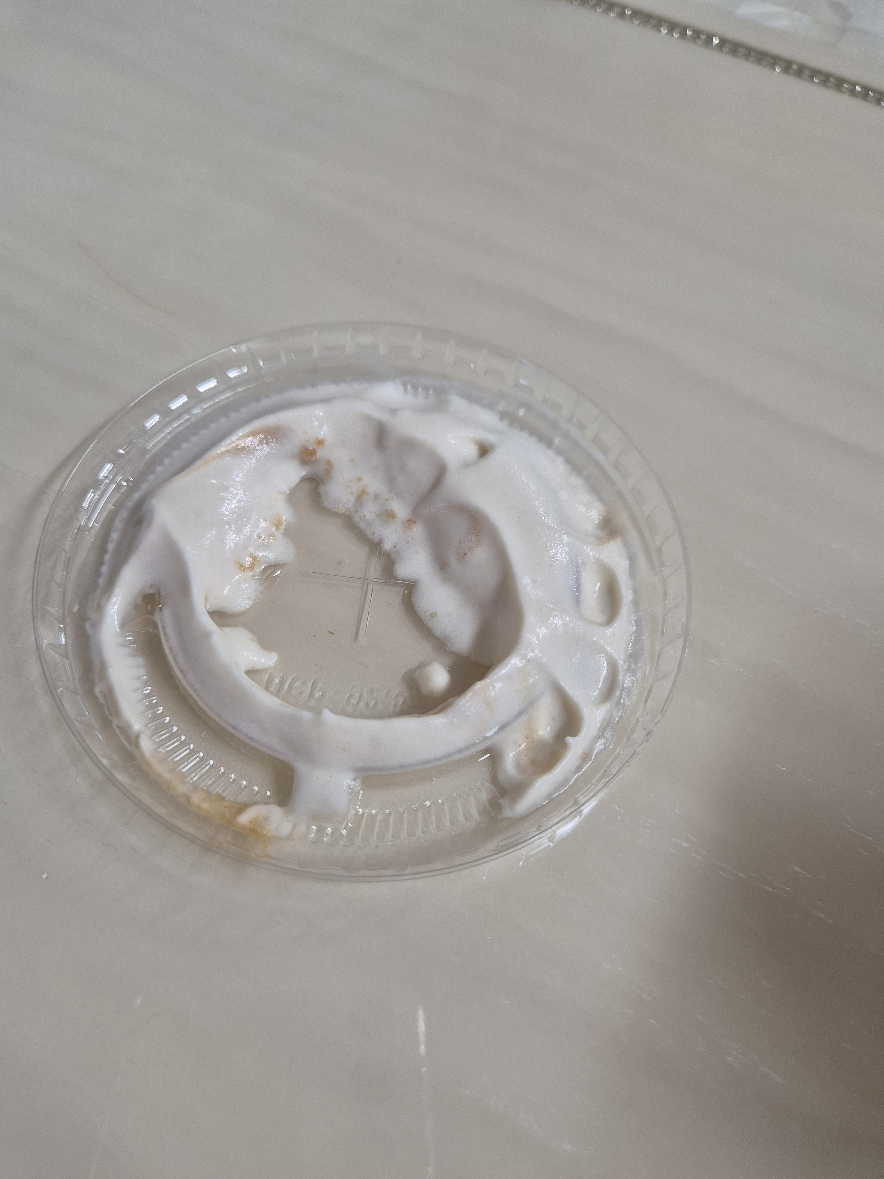 컵 뚜껑에도 크림이 굉장히 많이 붙어 있습니다.