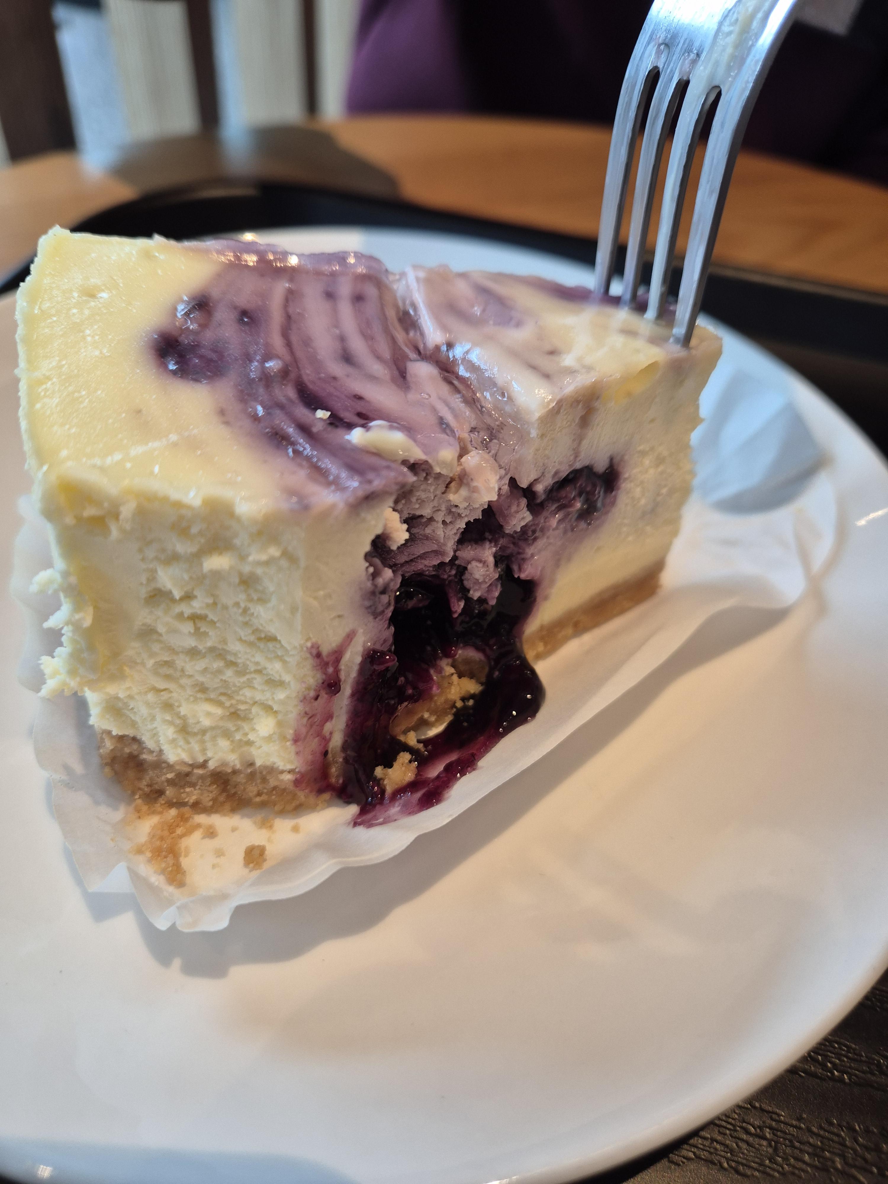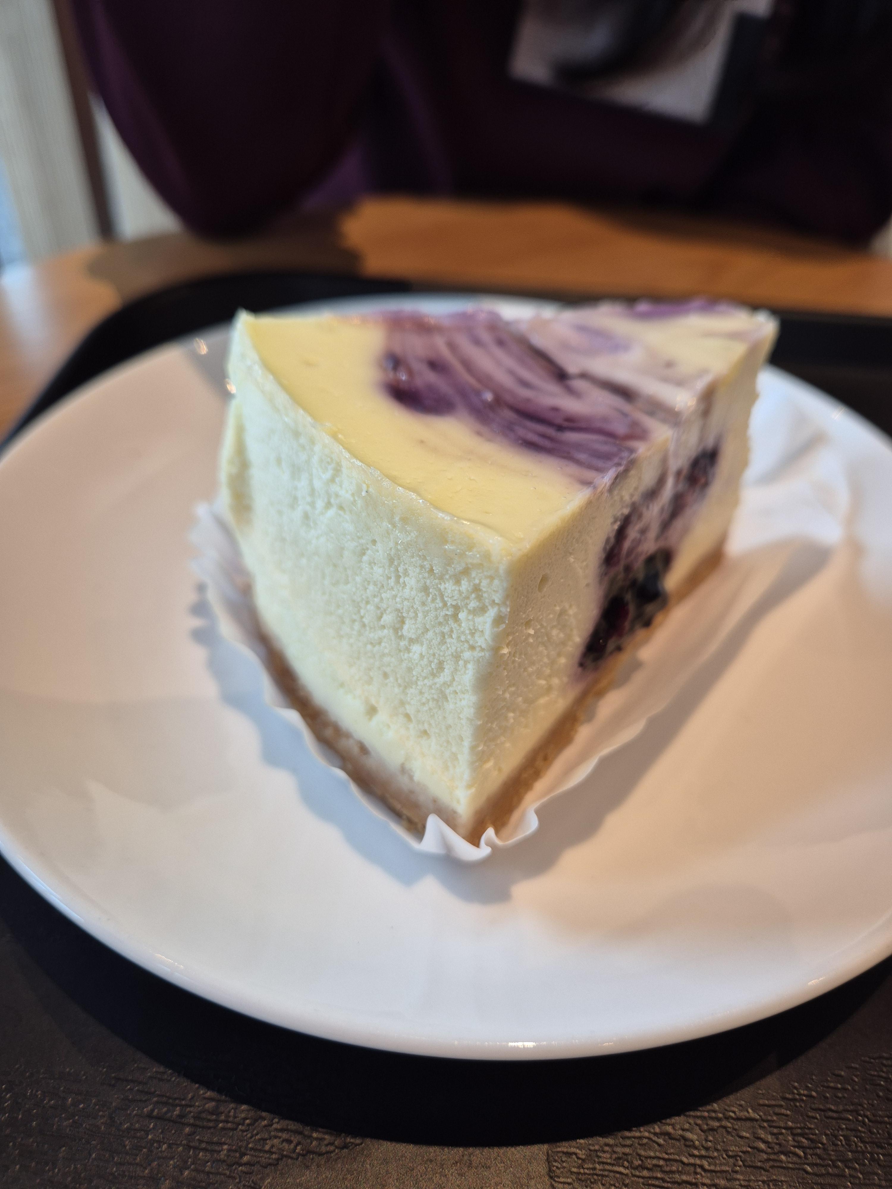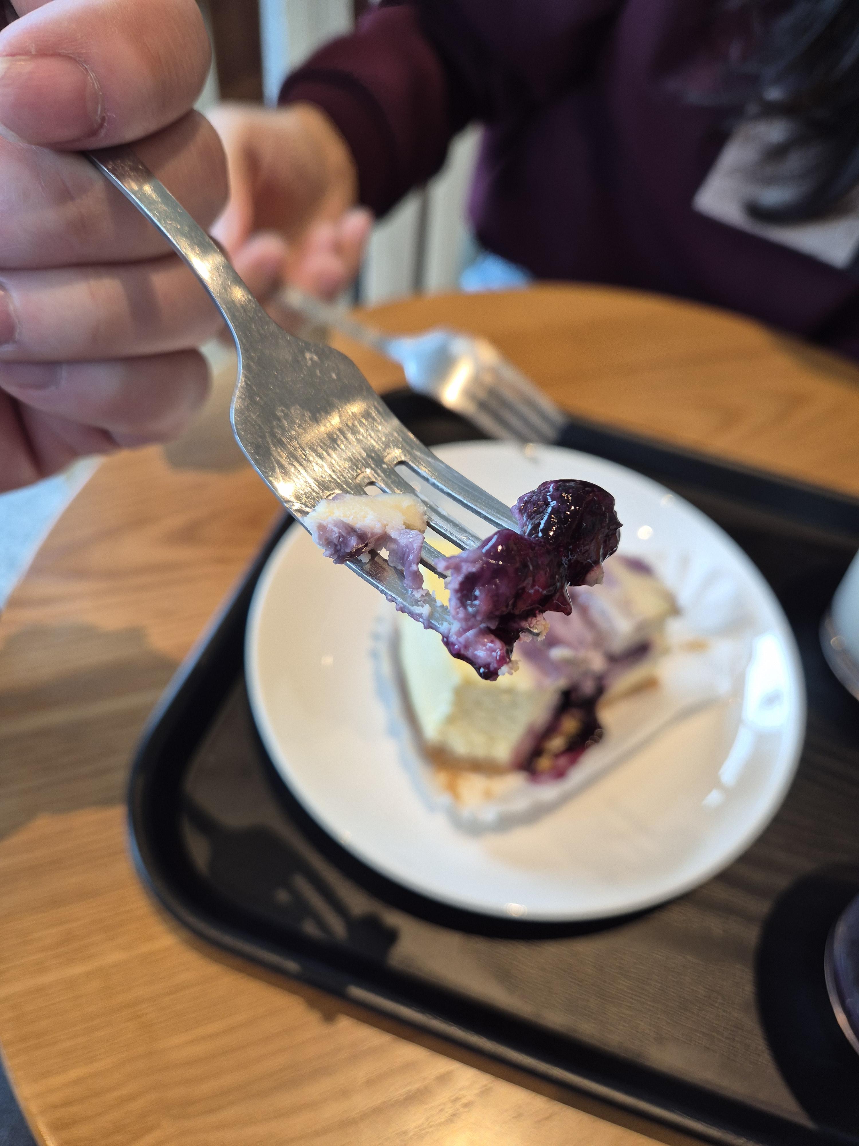 둘중에서 블루베리가 들어간 치즈케이크를 주문하였습니다.