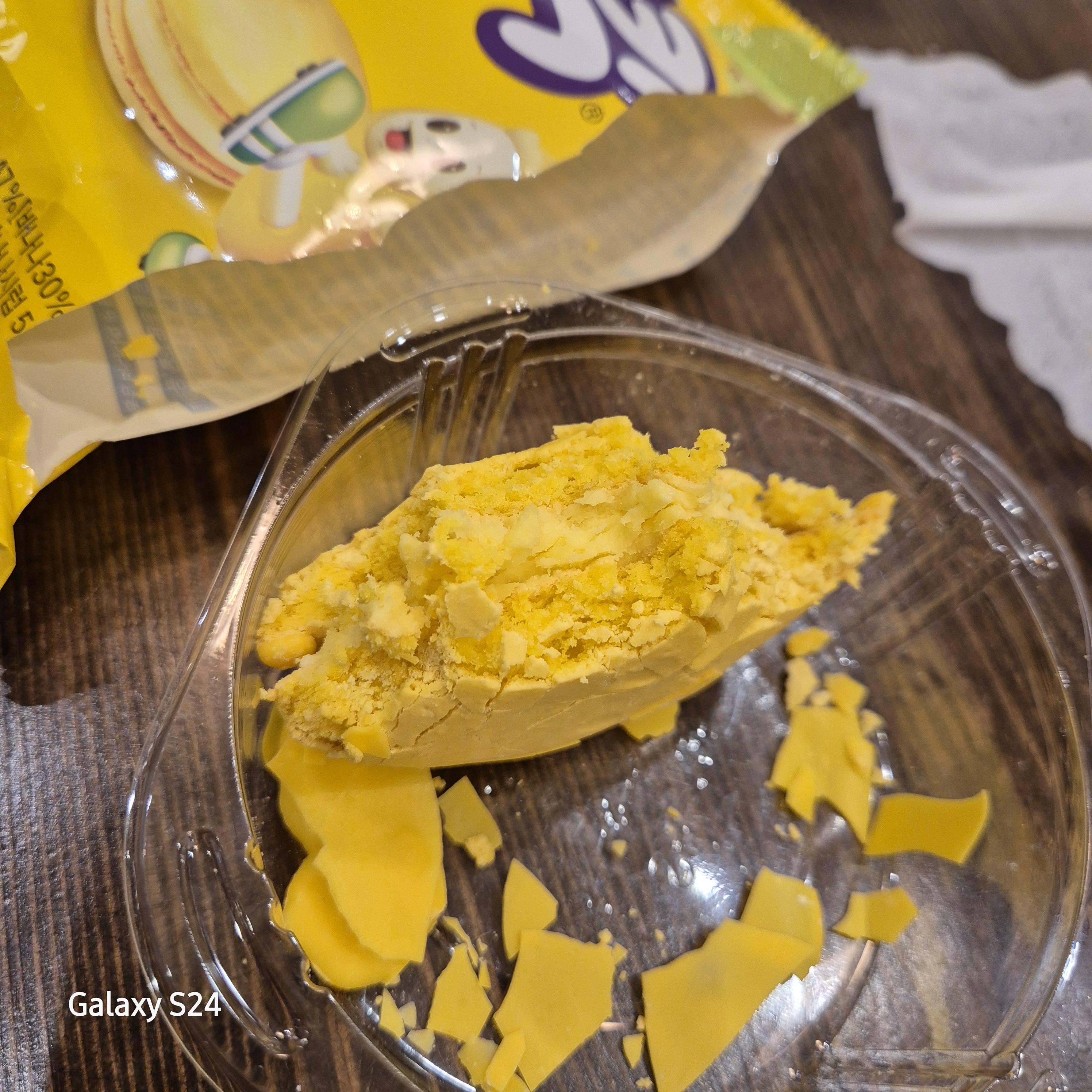 배송 오면서 노란색 초콜렛 코팅이 많이 깨져 있긴 합니다.