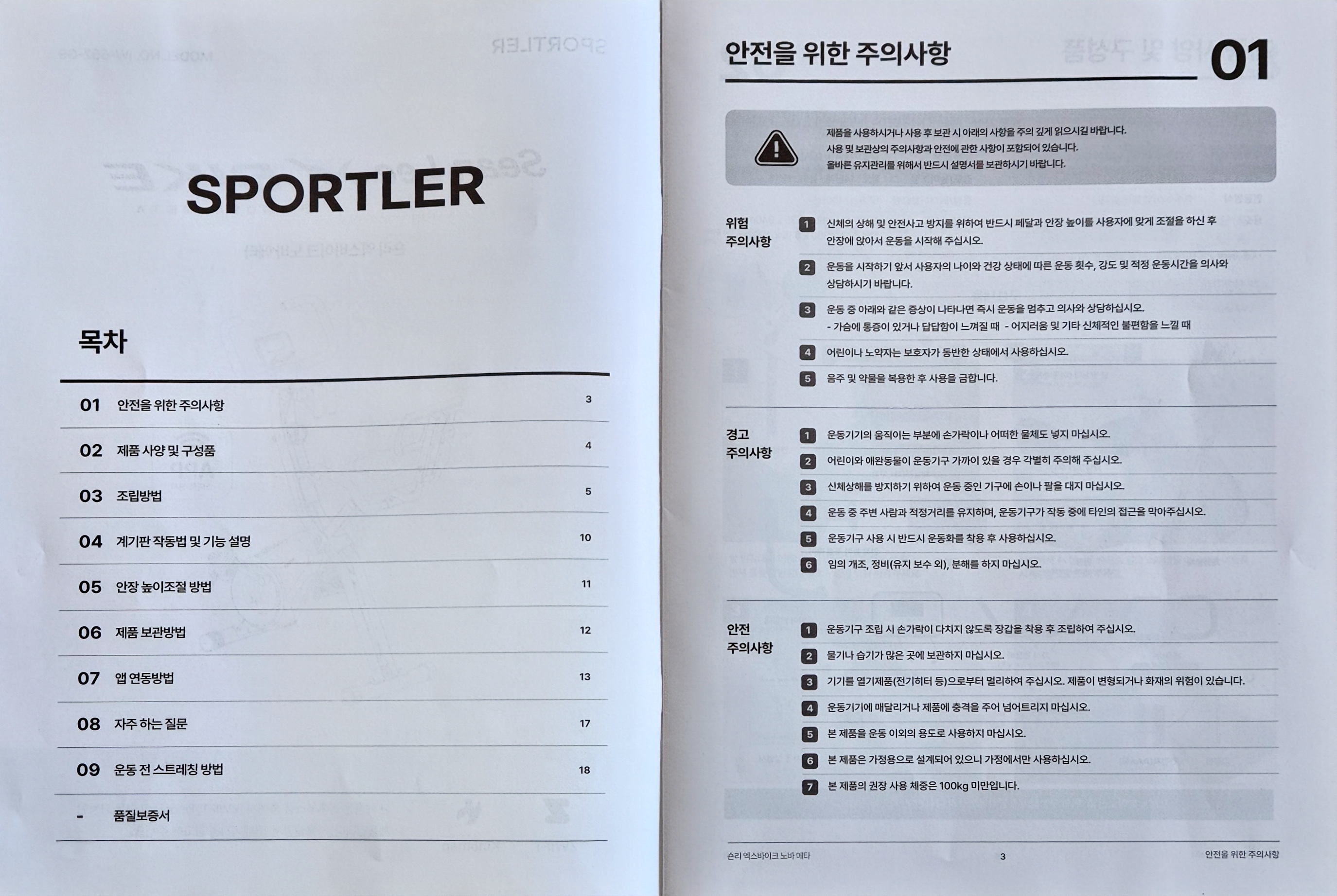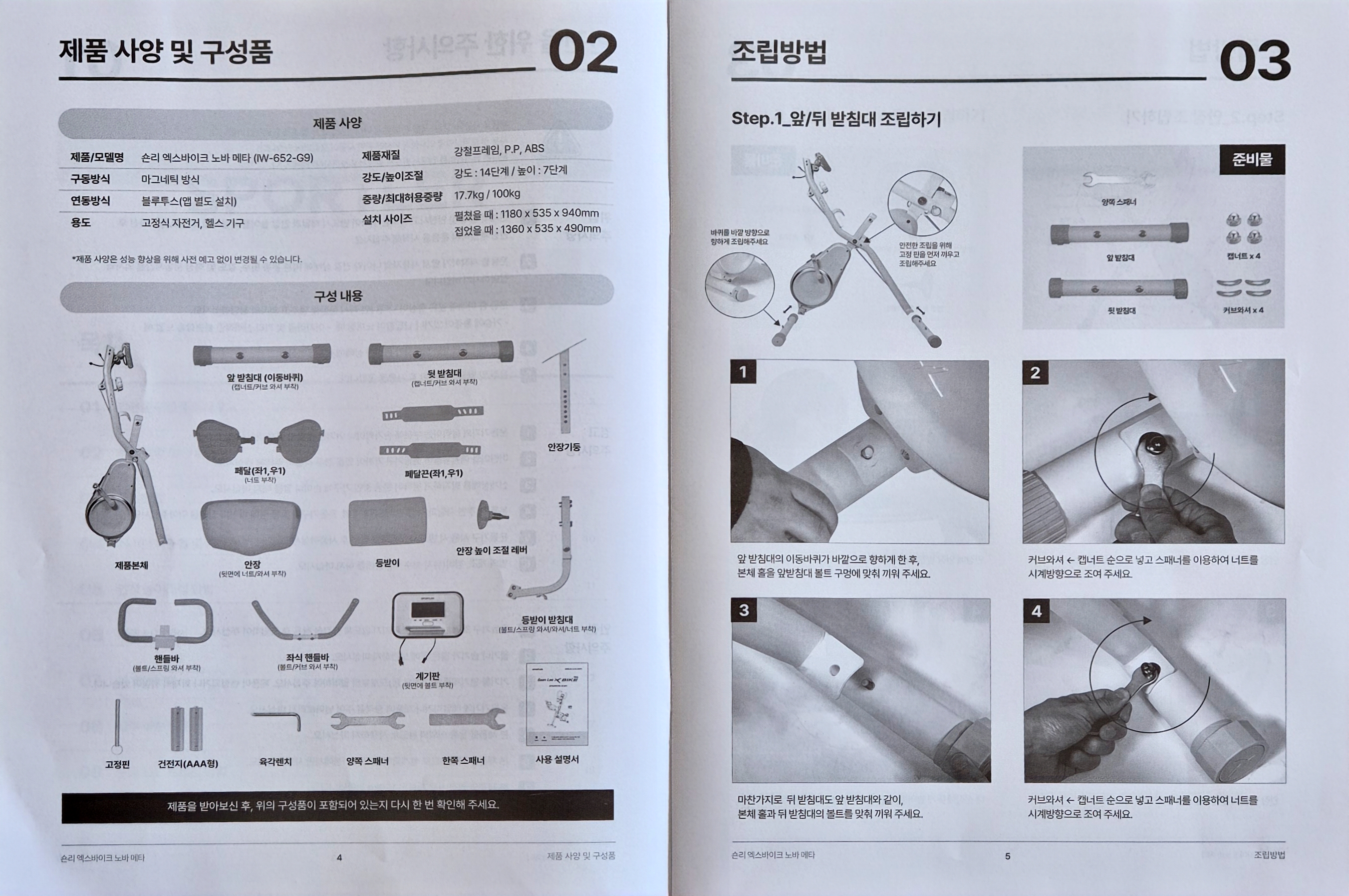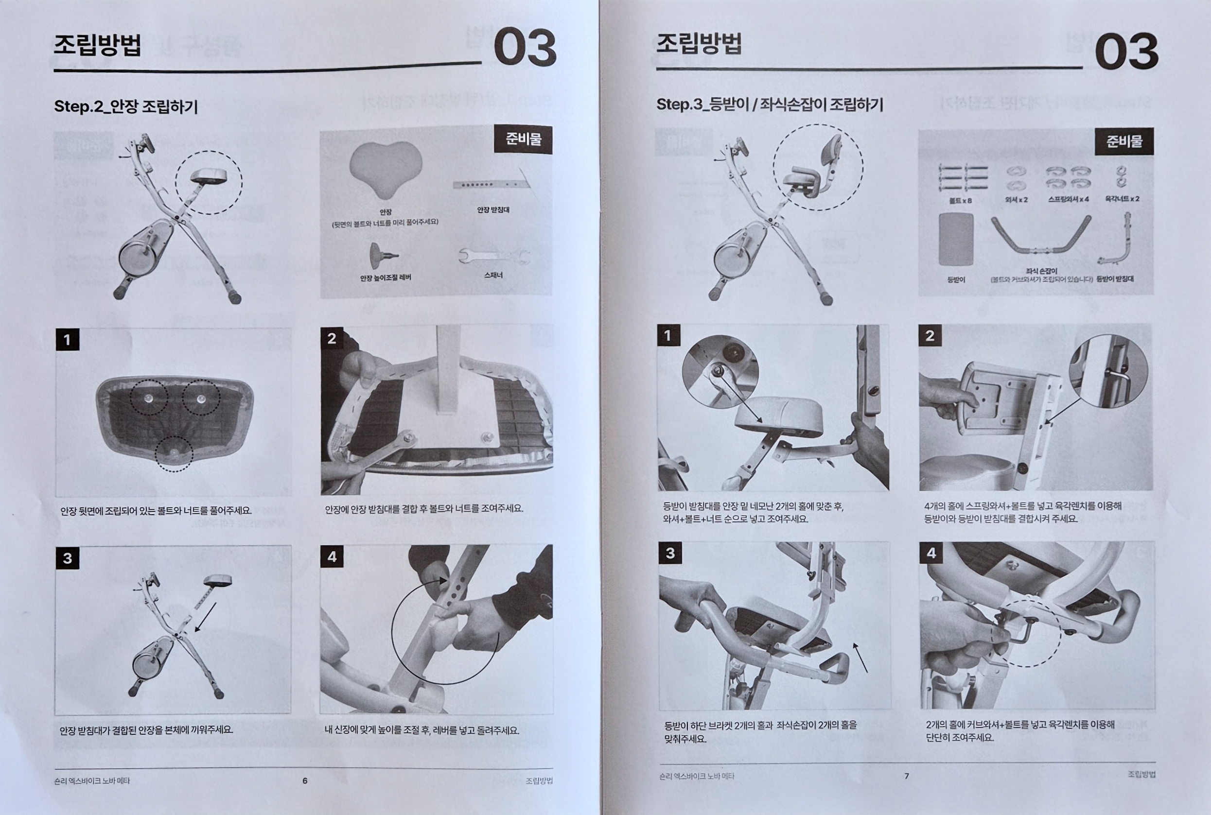 조립순서는 하단 받침대 2개, 안장, 손잡이, 모니터 이 순으로 조립을 하시면 됩니다.