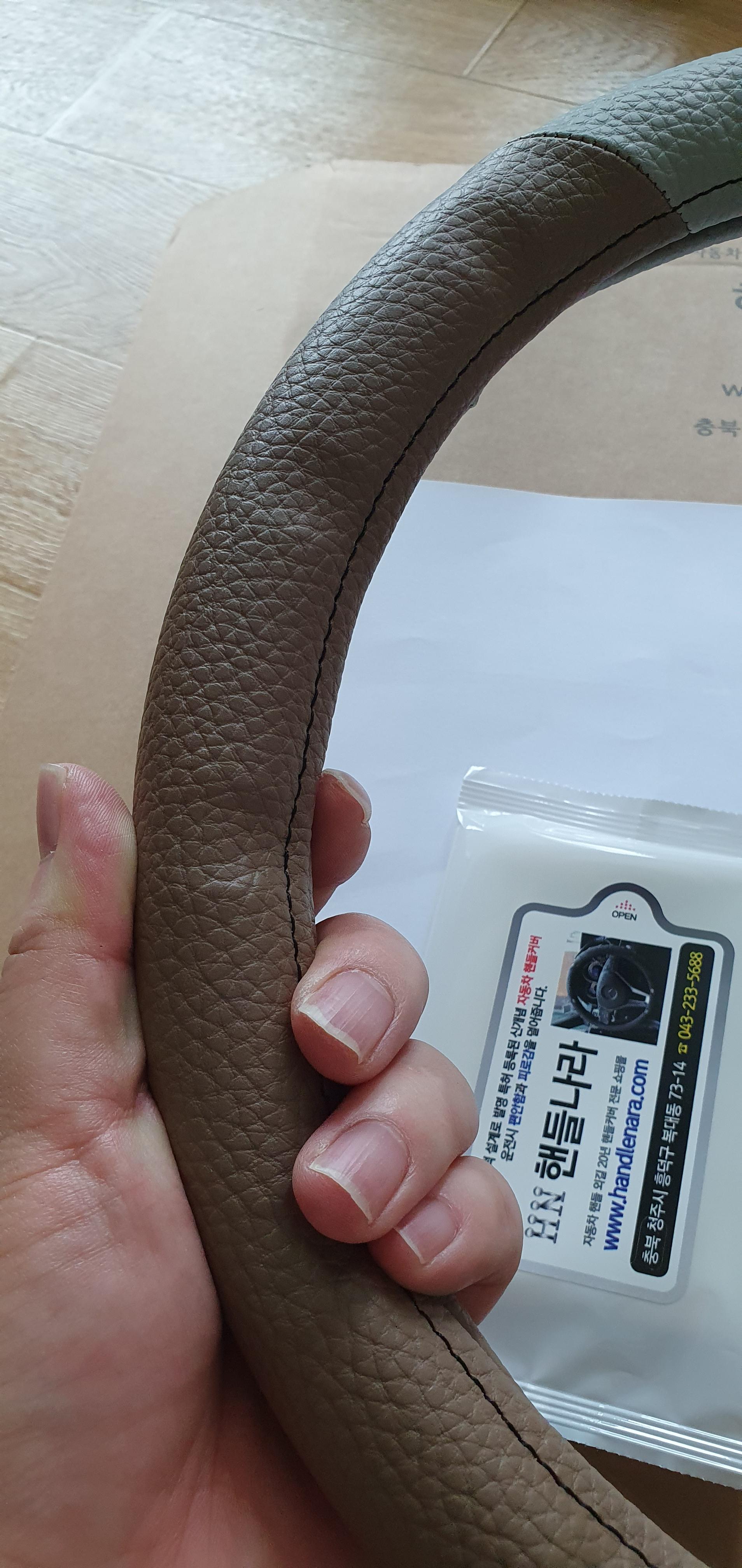 여기 핸들나라의 핸들커버는 친환경 인조가죽과 천연고무 및 뒷면이 중간중간 구멍이 뚫여서 핸들 그립감도 좋습니다.