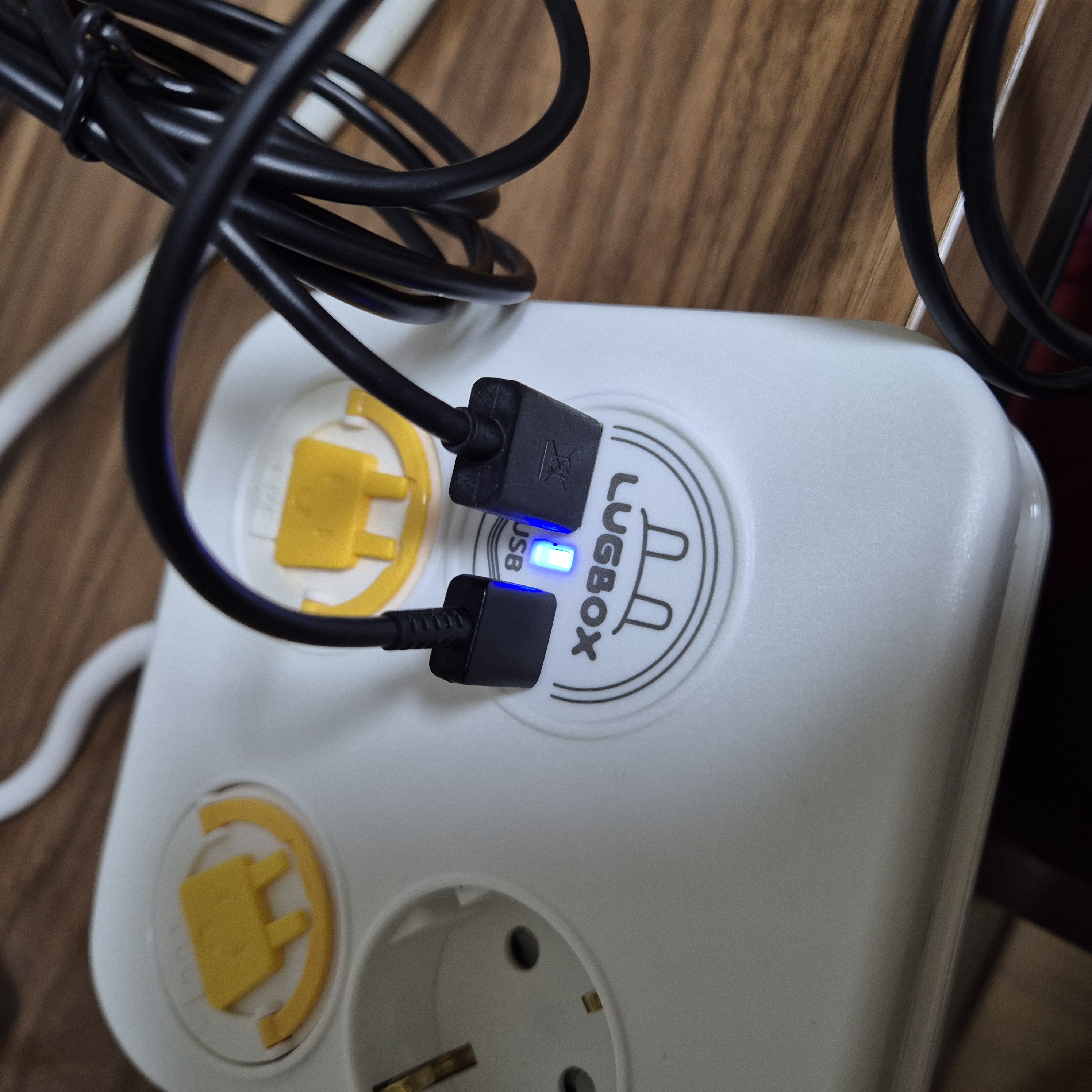 멀티탭 전원을 누르면 충전기 쪽에 램프가 파란색이 들어옵니다.