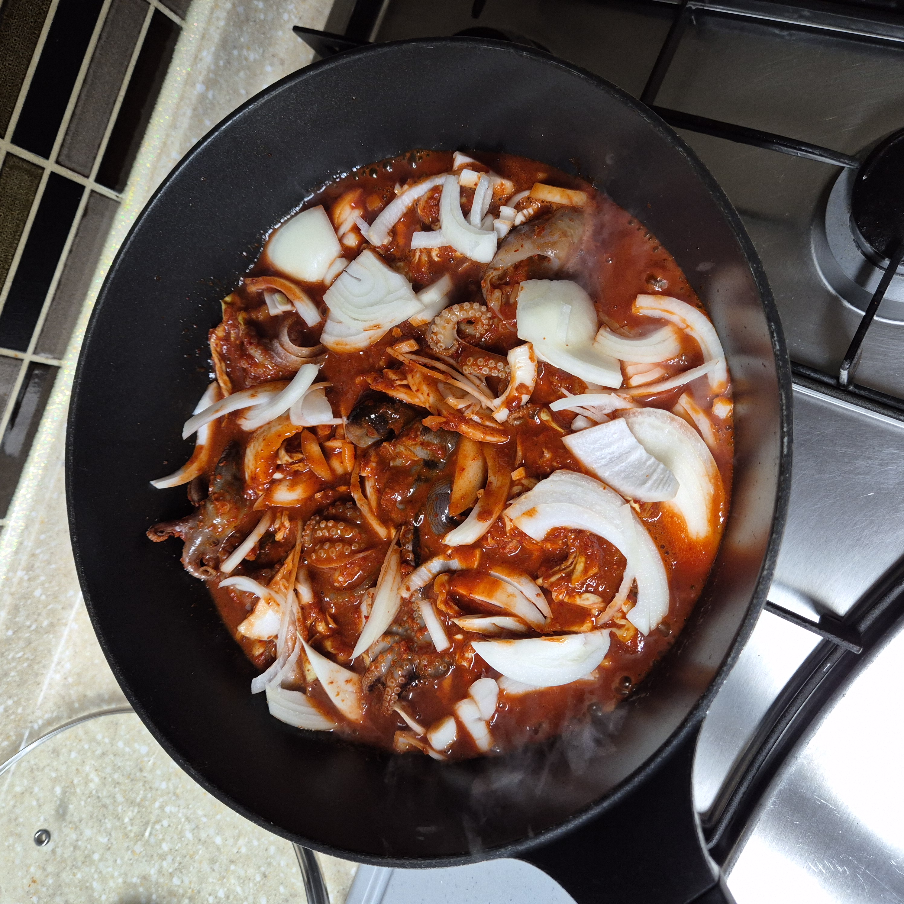 2. 쭈꾸미 볶음을 그대로 넣고, 센불로 7분간 볶은다.