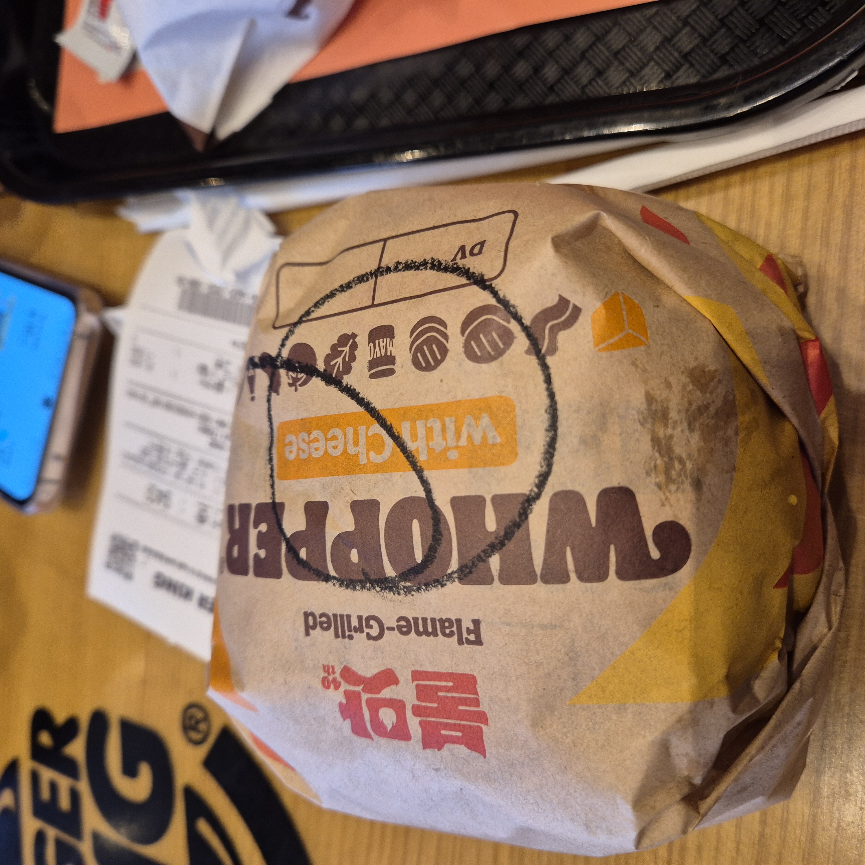일반 와퍼는 포장지에 아무것도 없고,