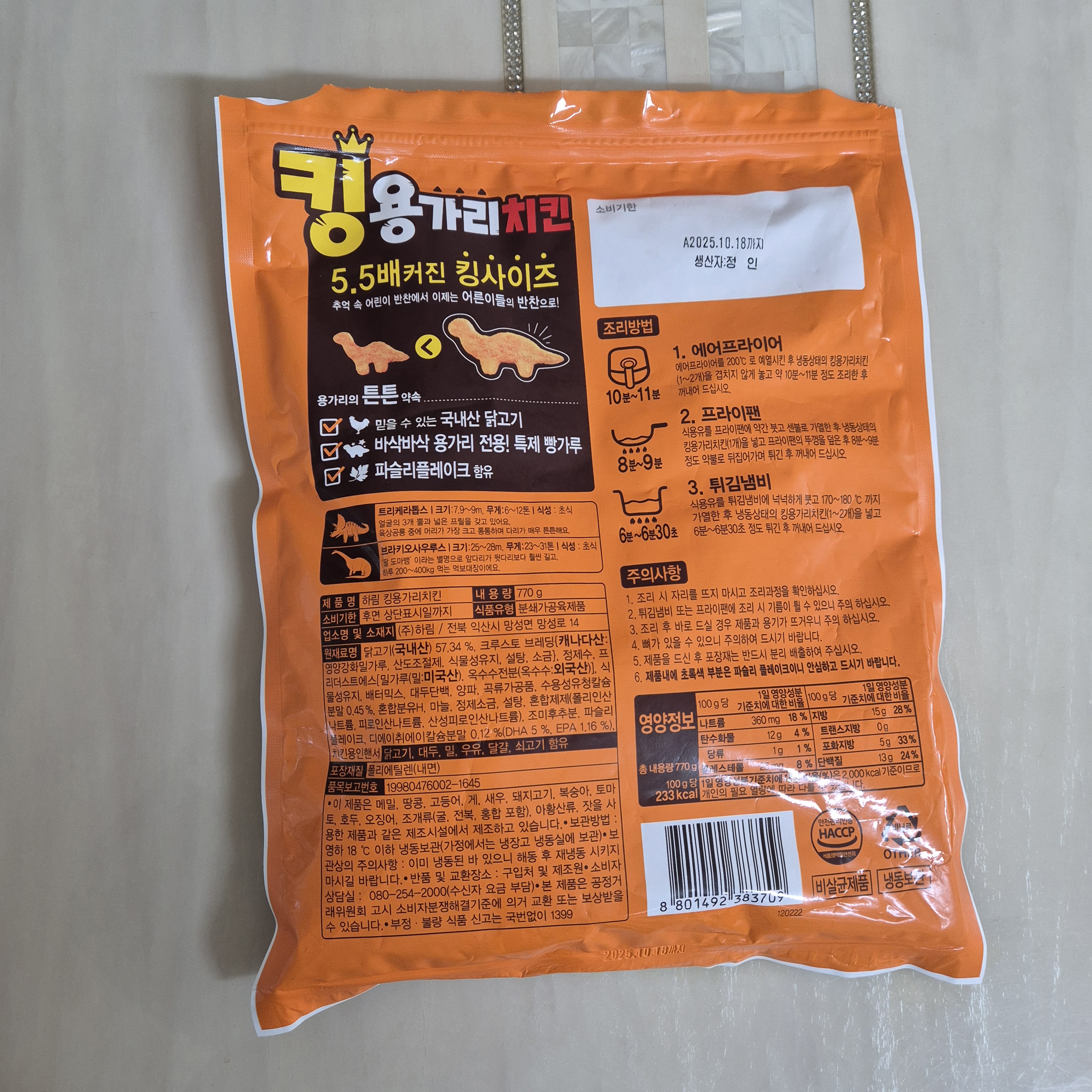 킹용가리 치킨너겟은 770그램이 들어가 있으며,