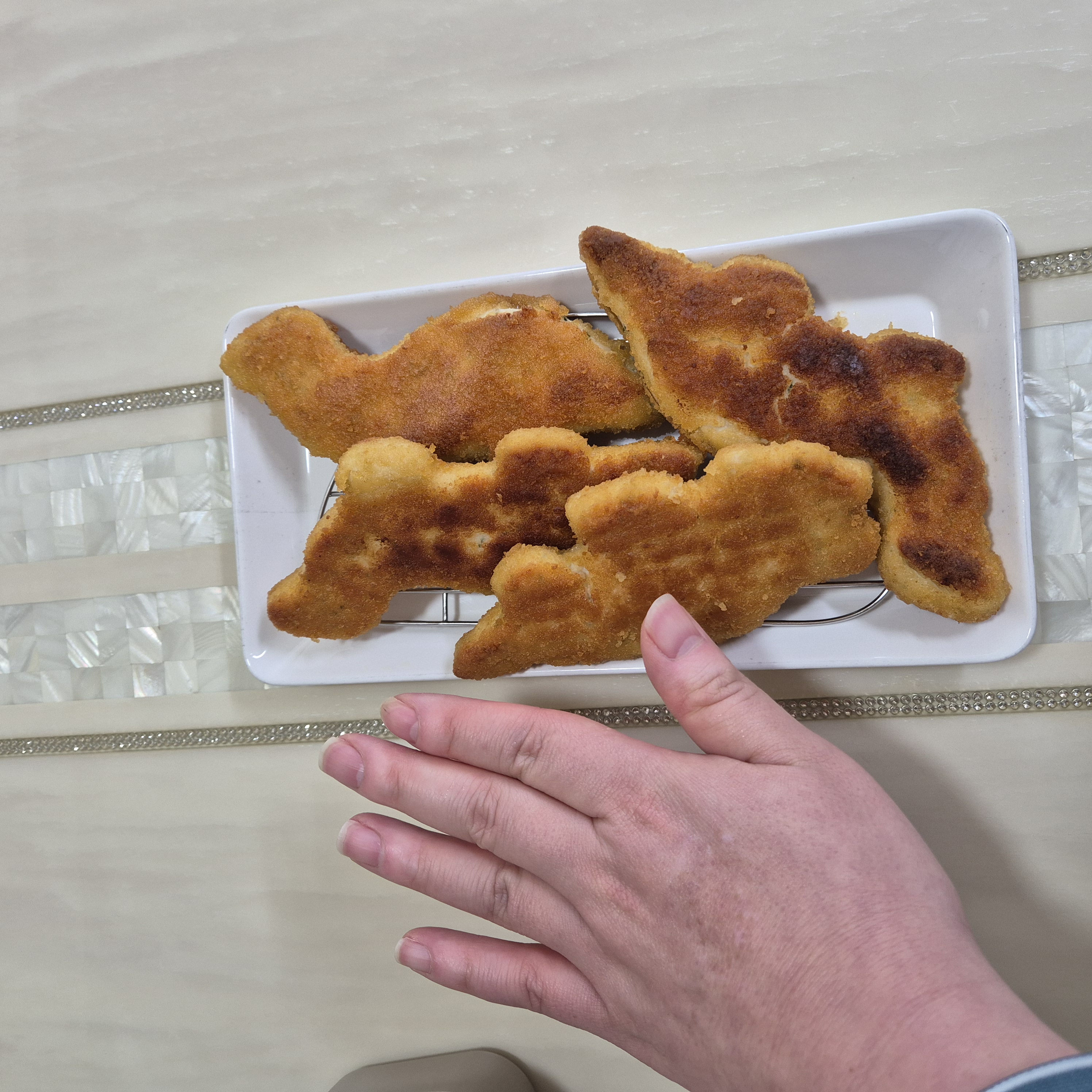 킹용가리 치킨은 모양이 브라키오사우르스랑 트리케라톱스만 있는거 같았습니다.