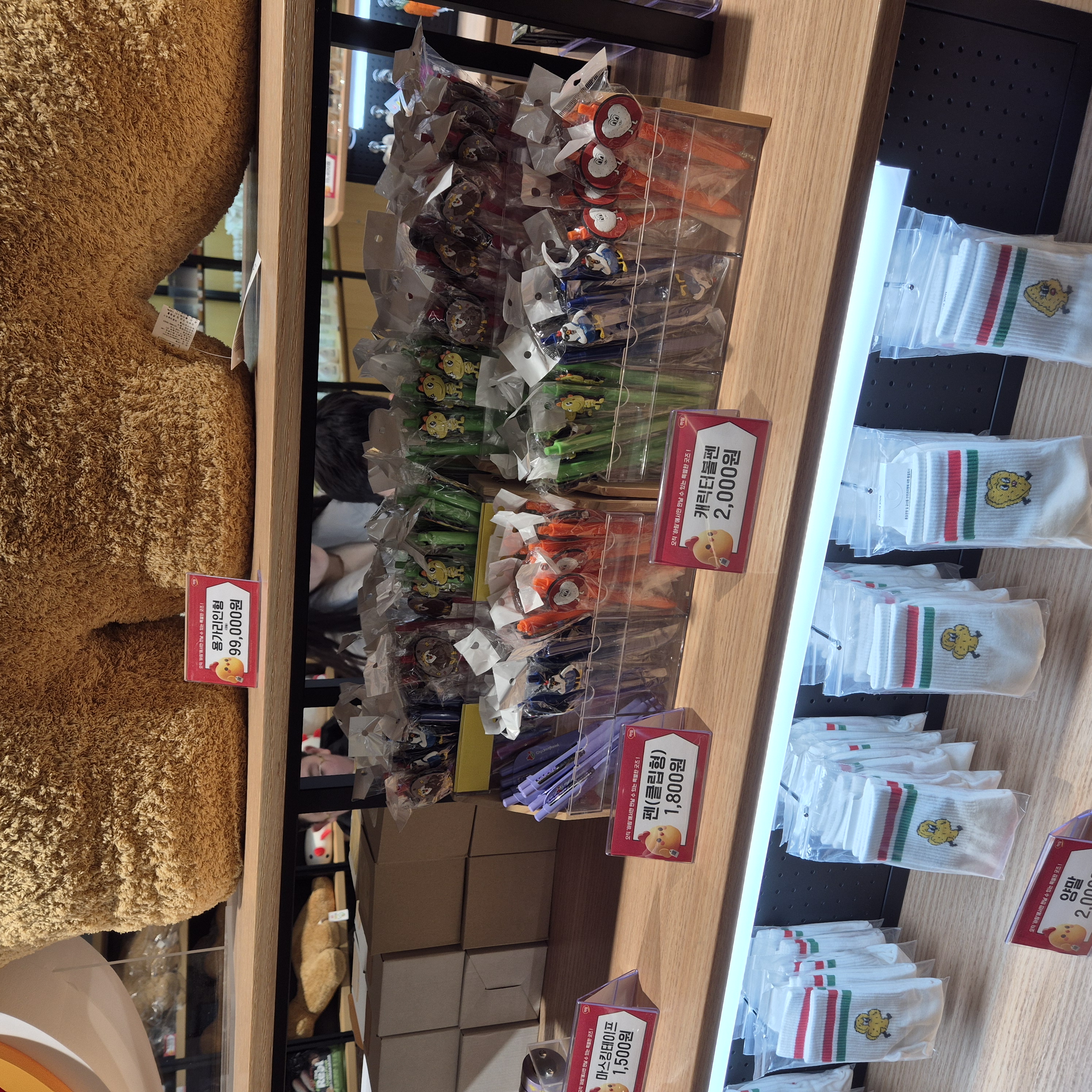 컵이나, 맥주잔, 펜, 치킨 집게, 엄지 검지 손가락 일회용 비닐 장갑, 인형등 굉장히 많은 굿즈들을 만들고 있었습니다.