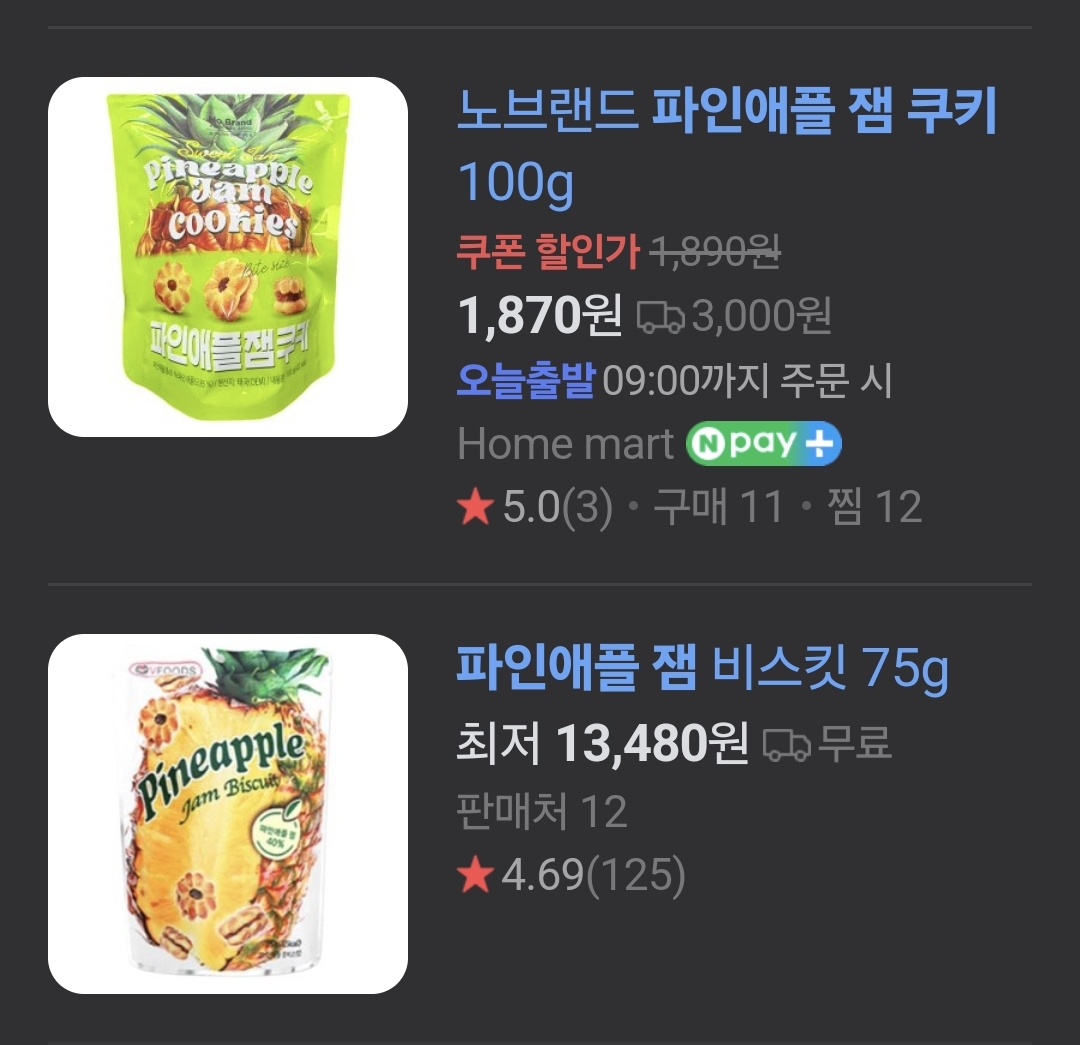 오늘은 아내가 좋아하는 파인애플 잼 쿠키를 구매했습니다.