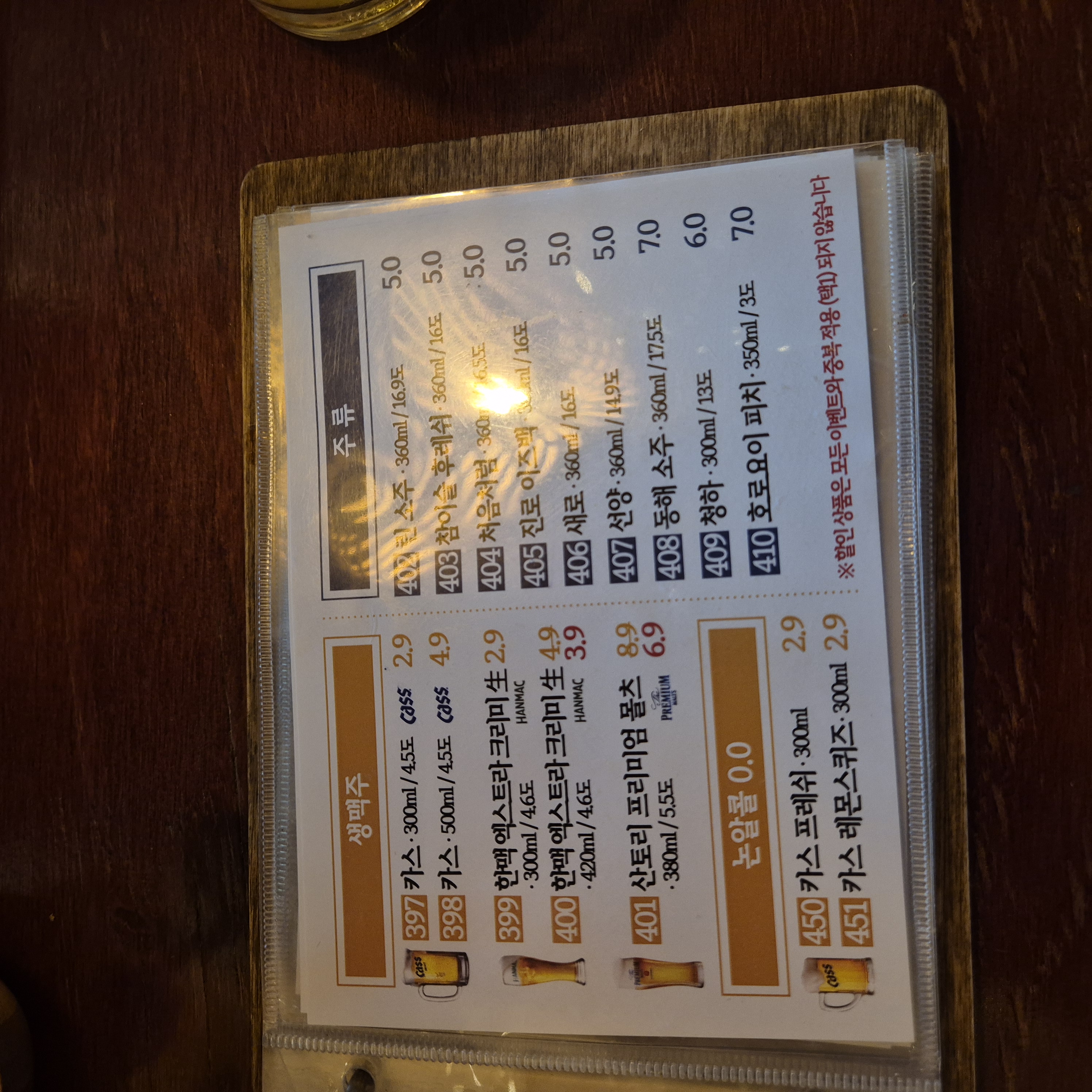 술은 맥주 1병, 소주1병을 시켰습니다.