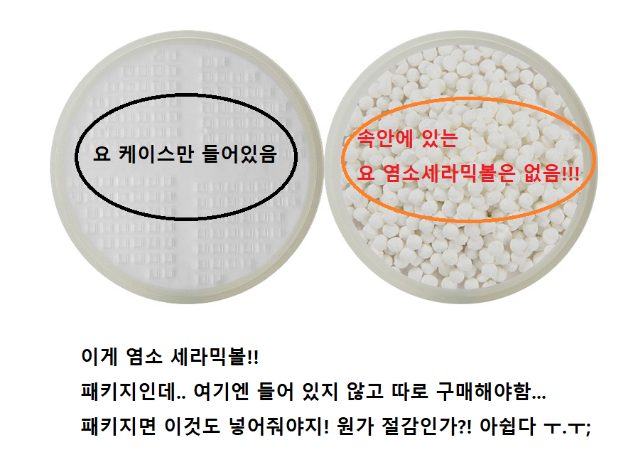 근데 이 패키지에은 염소세라믹 볼이 들어가 있지 않고.. 그냥 케이스만 들어가 있습니다.