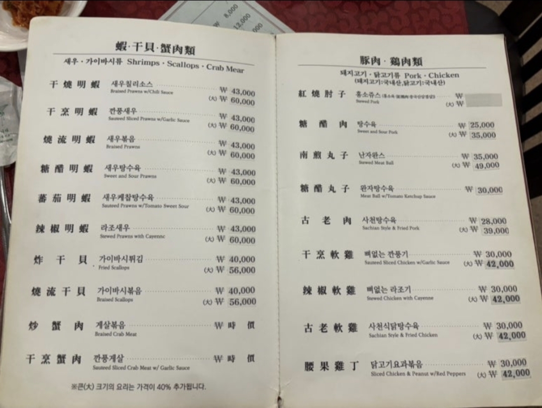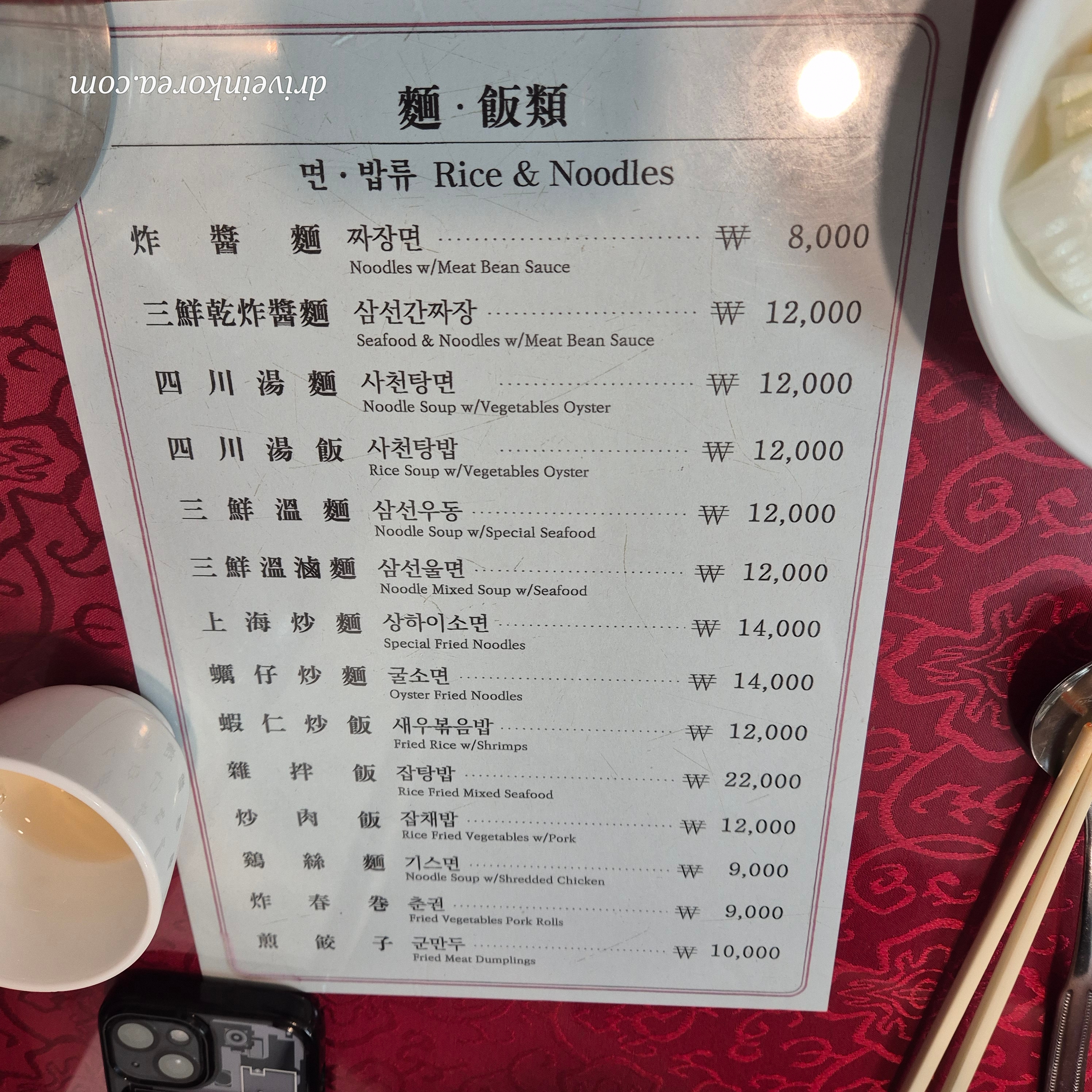 짜장면만 1만원이 안되고, 나머지 기본으로 잘 먹는메뉴들은 1개 12000원 입니다.