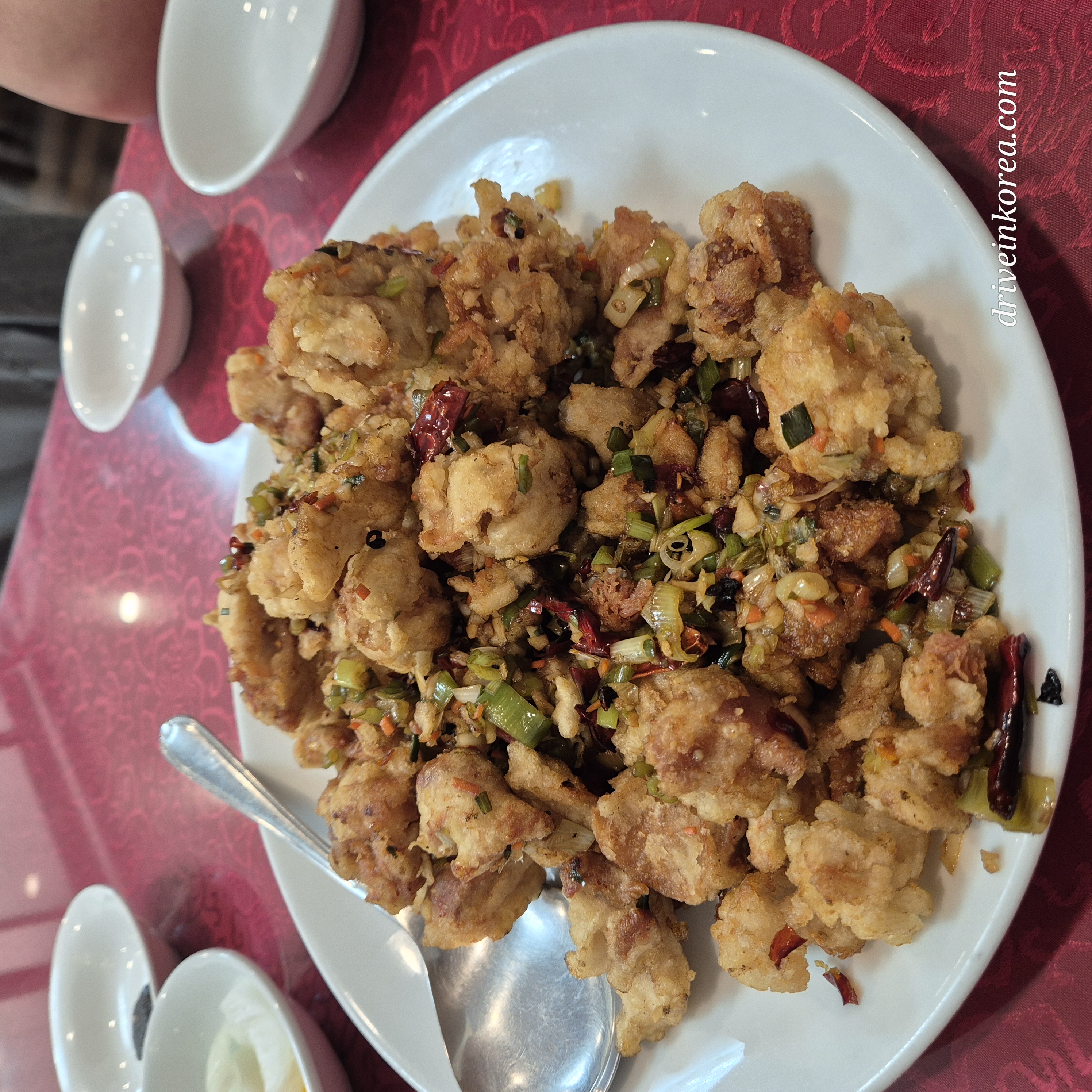 기름좔좔 바삭한 닭튀김 그리고 토핑으로 올라간 매콤한 고추양념 시즈닝 ! 아주맛있어요.