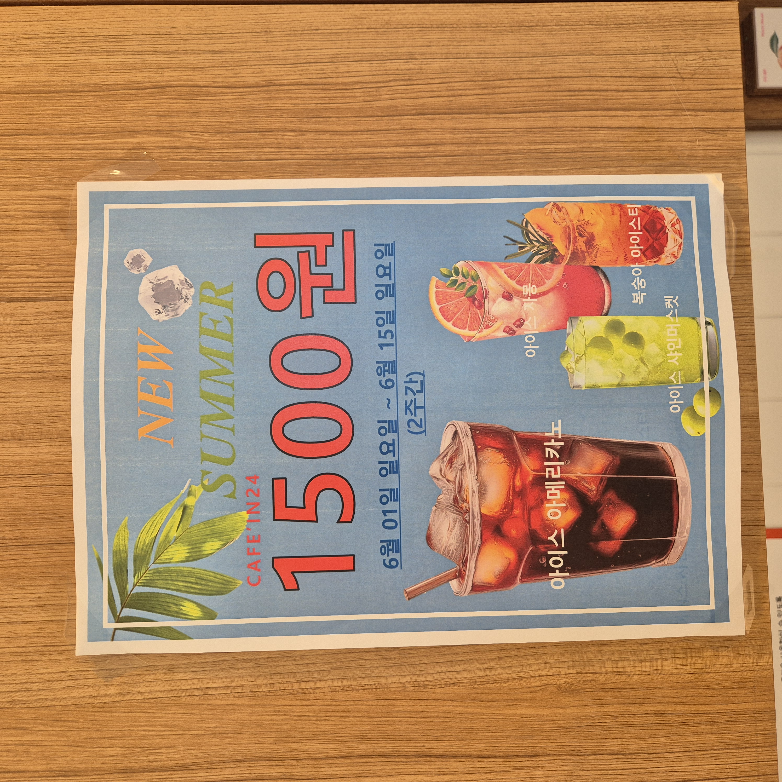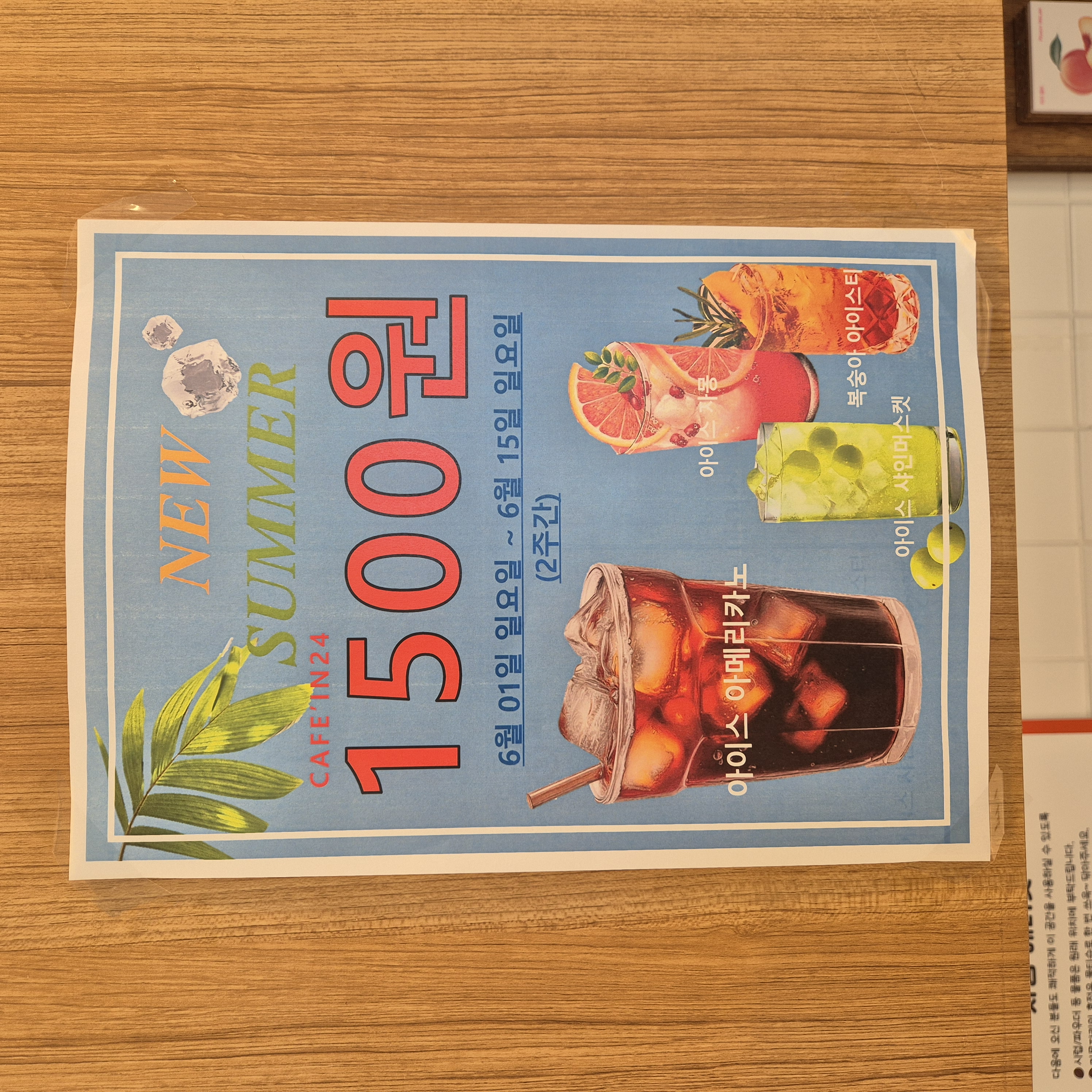 6월 썸머 행사로 1500원에 커피 1잔에 마실 수 있는 기회가 주어졌습니다.