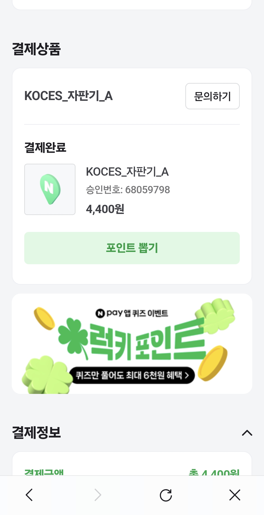 네이버페이로도 결제가 가능합니다.
