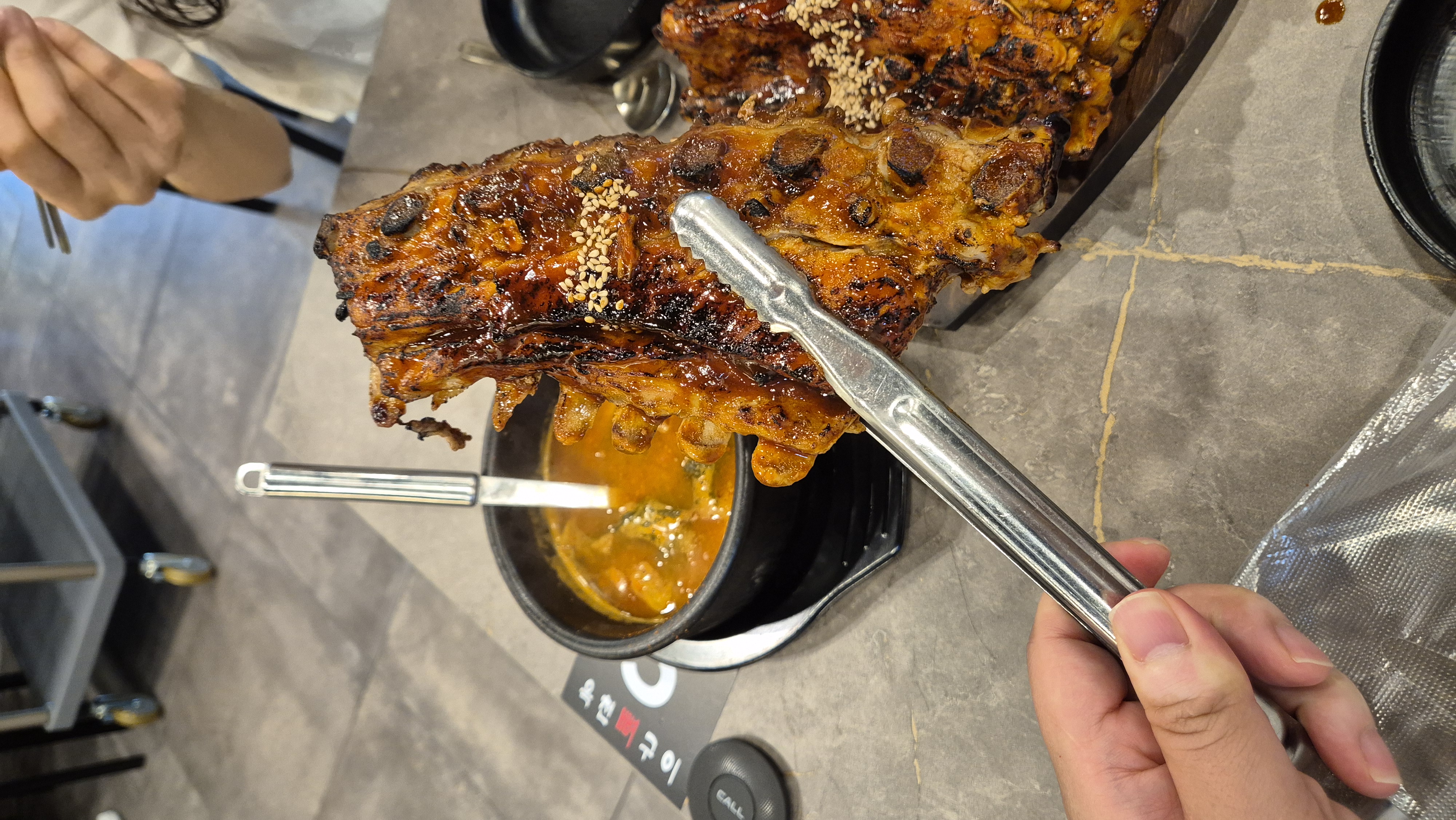 평일 점심에 방문했었는데 약 20분 정도 기다리고 입장에서 뼈구이를 먹을 수 있었습니다.