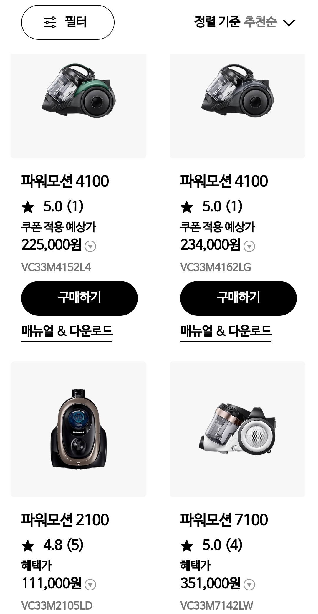 삼성 청소기 파워 모션 가격순