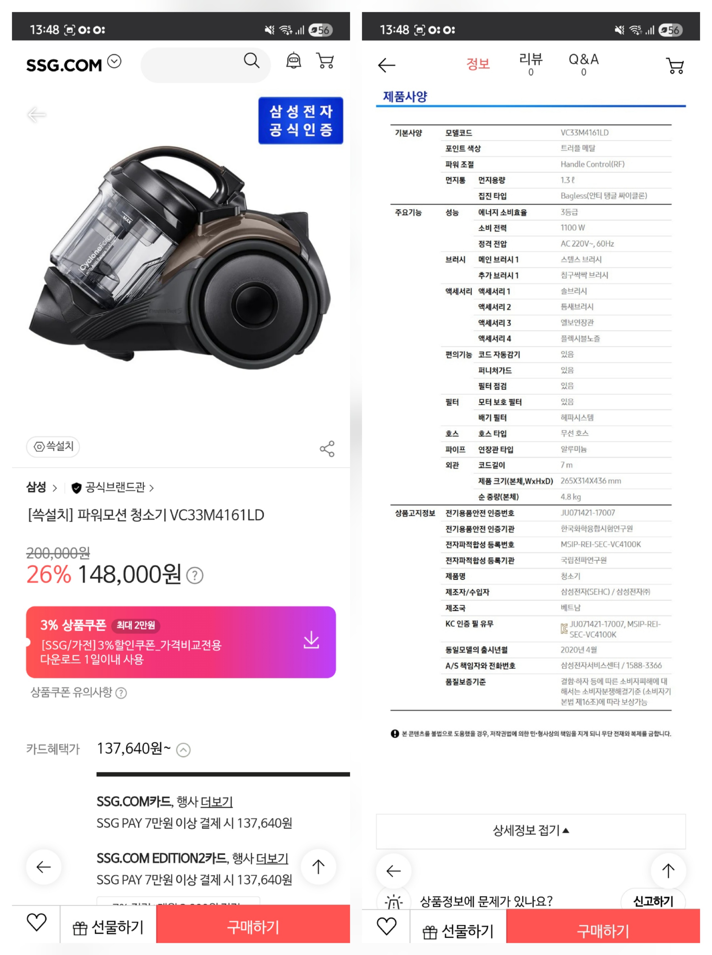 삼성 파워모션 진공청소기 VC33M4151LD 구매 했음! 이건 제발 5년만 써보자! 다신 일렉트로룩스 울트