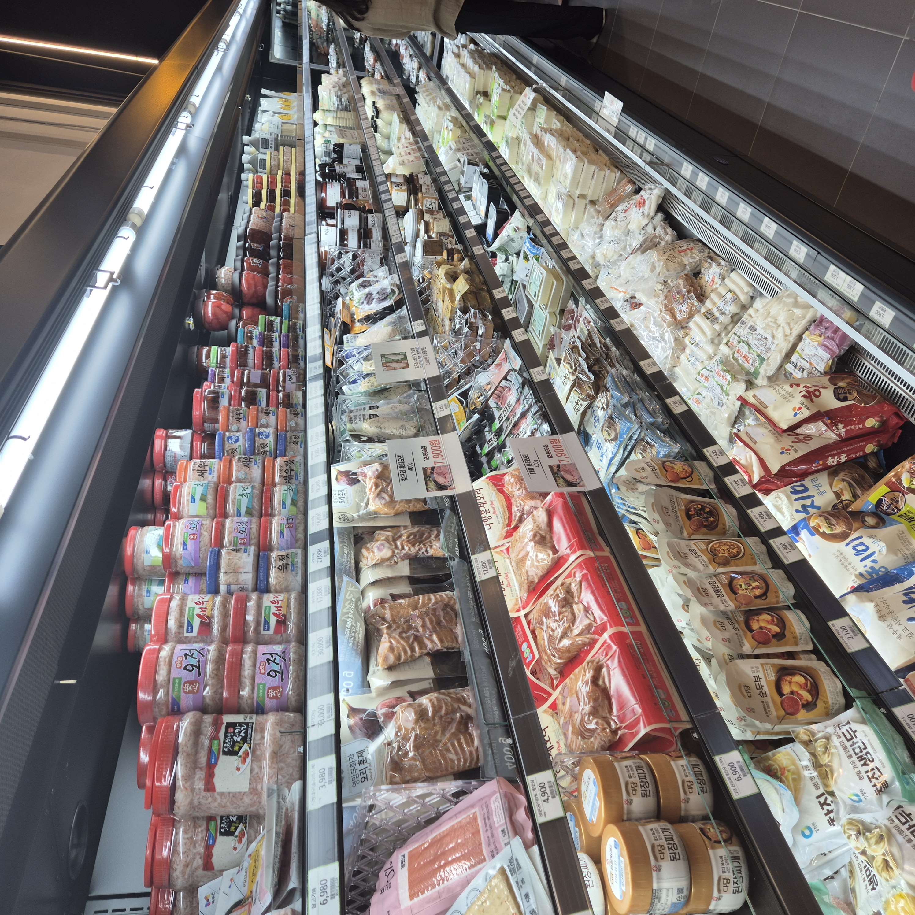 들어가자마자 야채와 냉장식품들이 앞에 있고, 안쪽에는 육계코너가 있습니다.