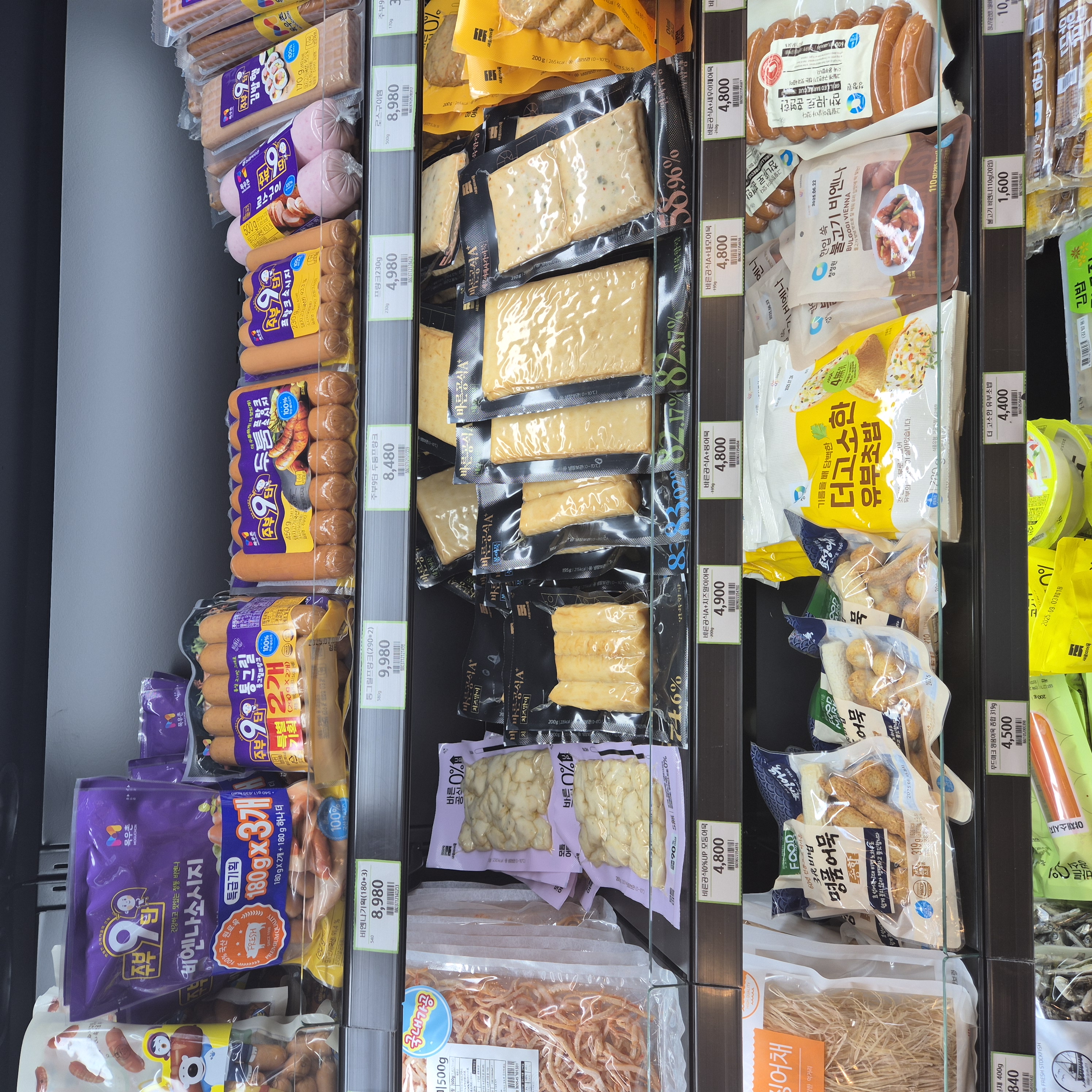 야채, 달걀, 과일, 반찬, 두부, 즉석식품 들 위주로 구매를 합니다.