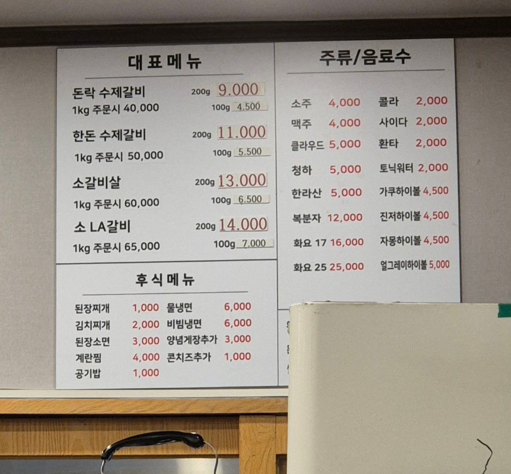 돼지갈비는 1키로에 4만원