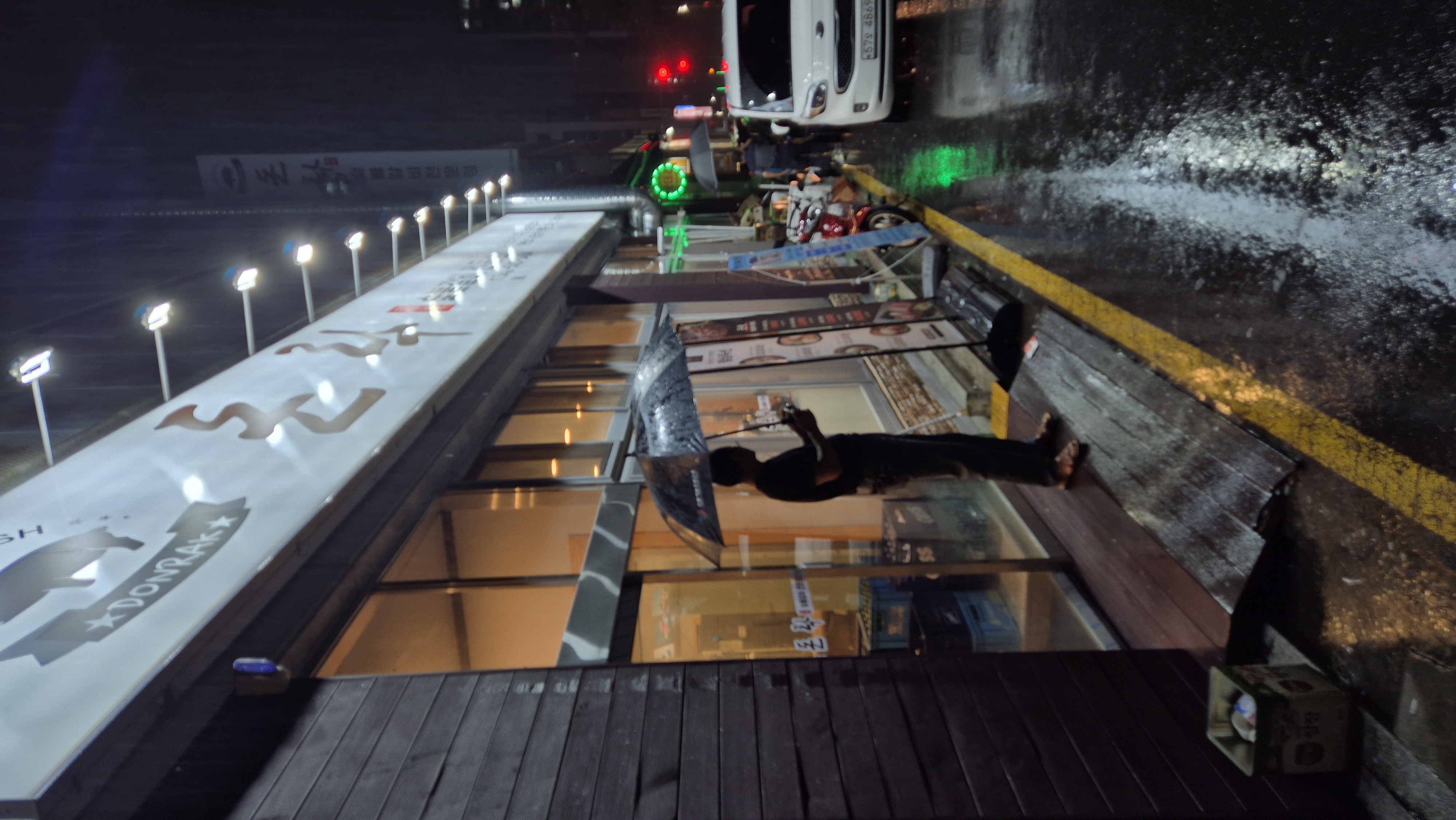 비 오는 날이지만 사람들이 꽉 차 있습니다.