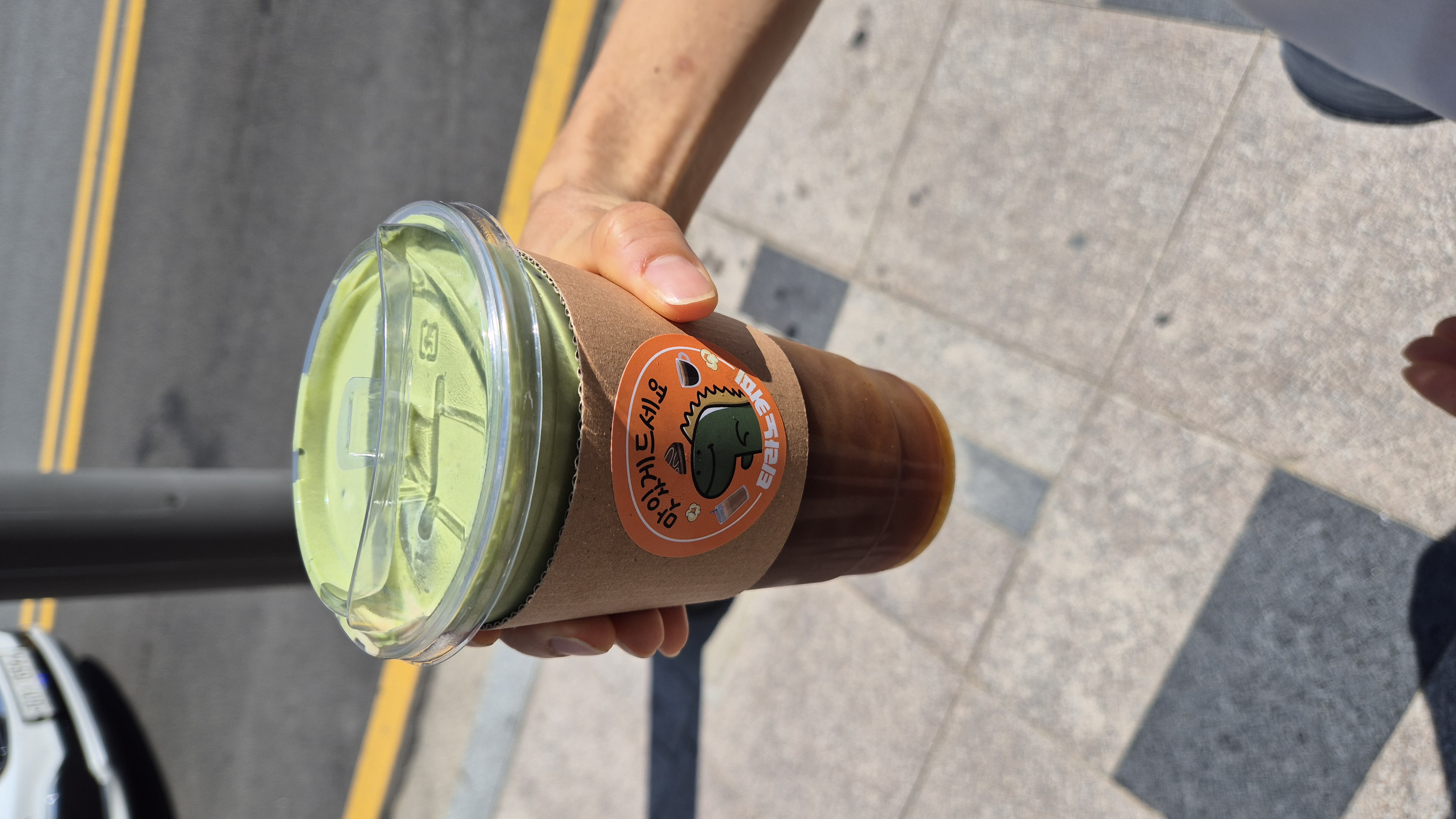 커피는 아메리카노 위에 말차크림이 올라간어찌보면 신기한 조합입니다.