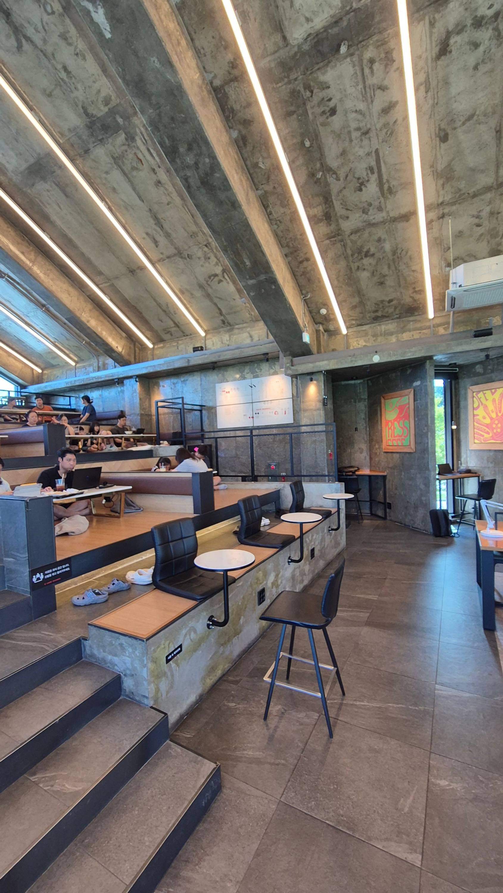 2층은 굉장히 넓고 높습니다. 에어컨도 굉장히 많이 켜져 있습니다.