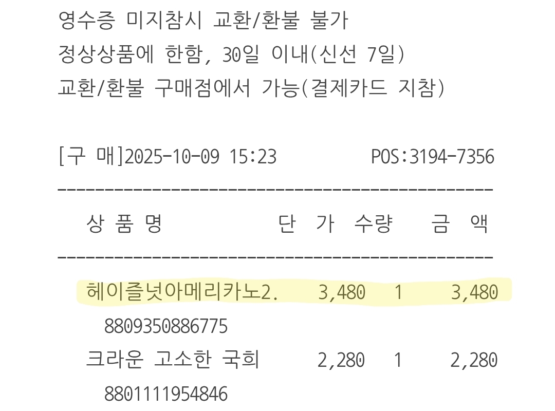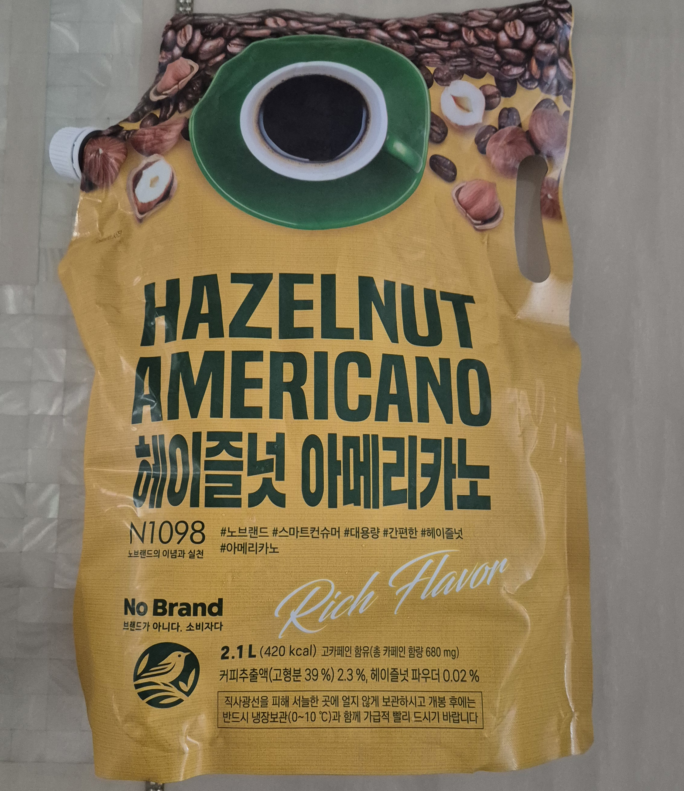 노브랜드 커피 헤이즐넛 아메리카노를 마셔보겠습니다.