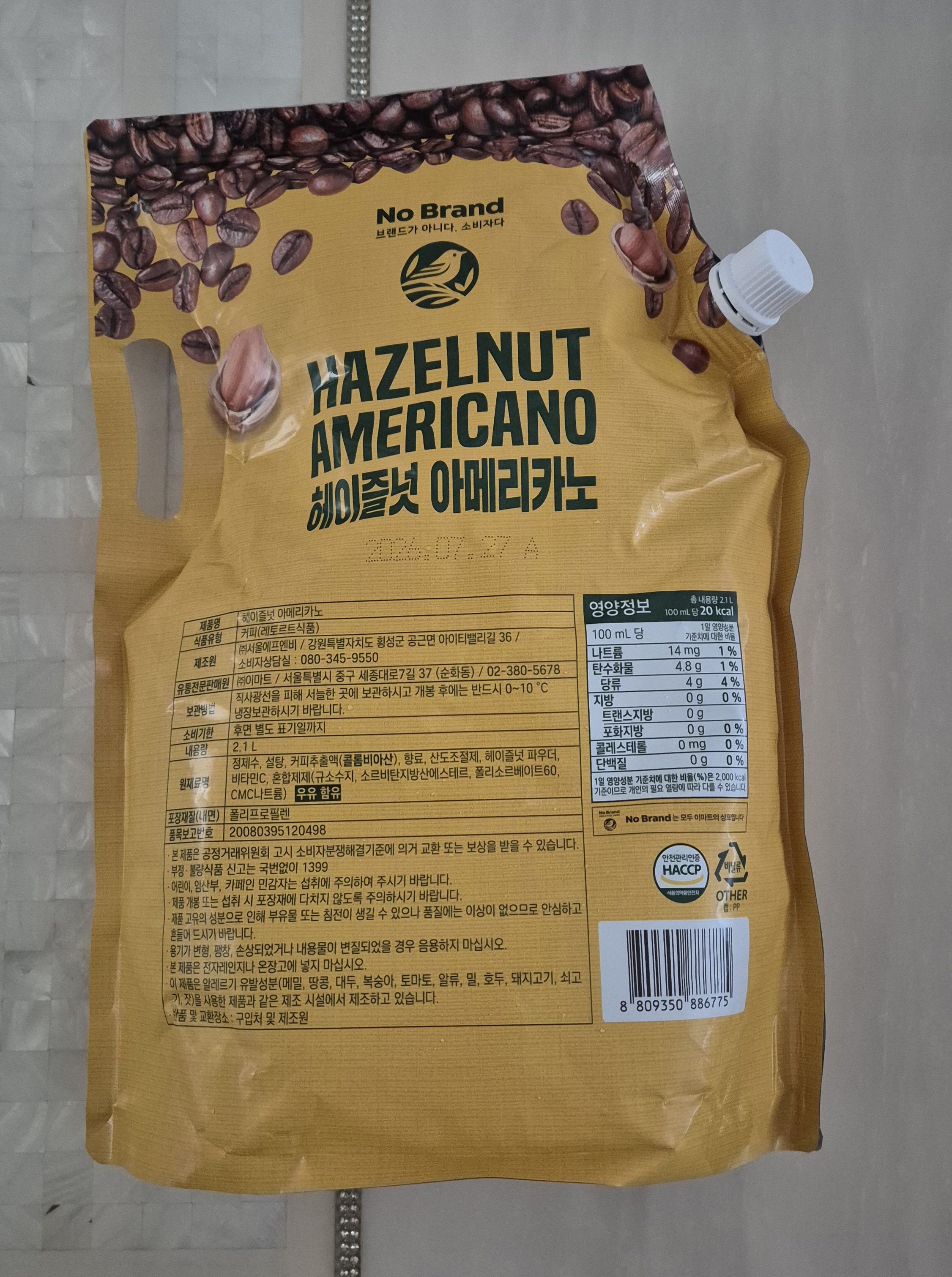 매번 홈플러스 파우치 커피를 먹었는데 오늘은 노브랜드 헤이즐넛 아메리카노 파우치 커피를 구매했습니다.