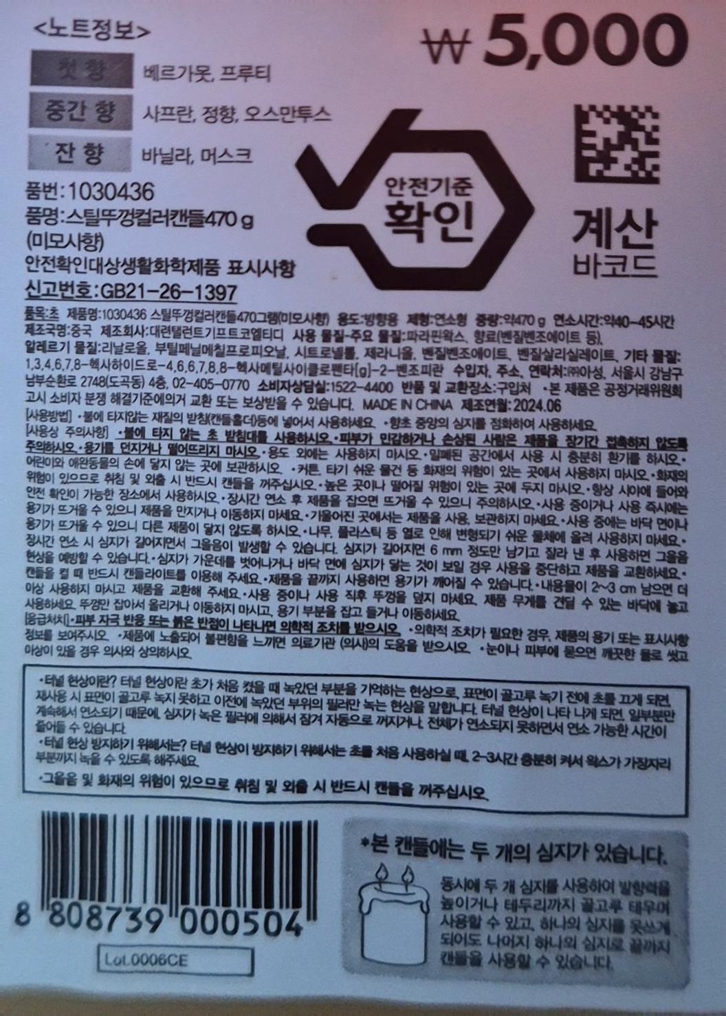 전 5천원을 주고 3만원 짜리의 큰 사이즈 향초를 구매하였습니다.
