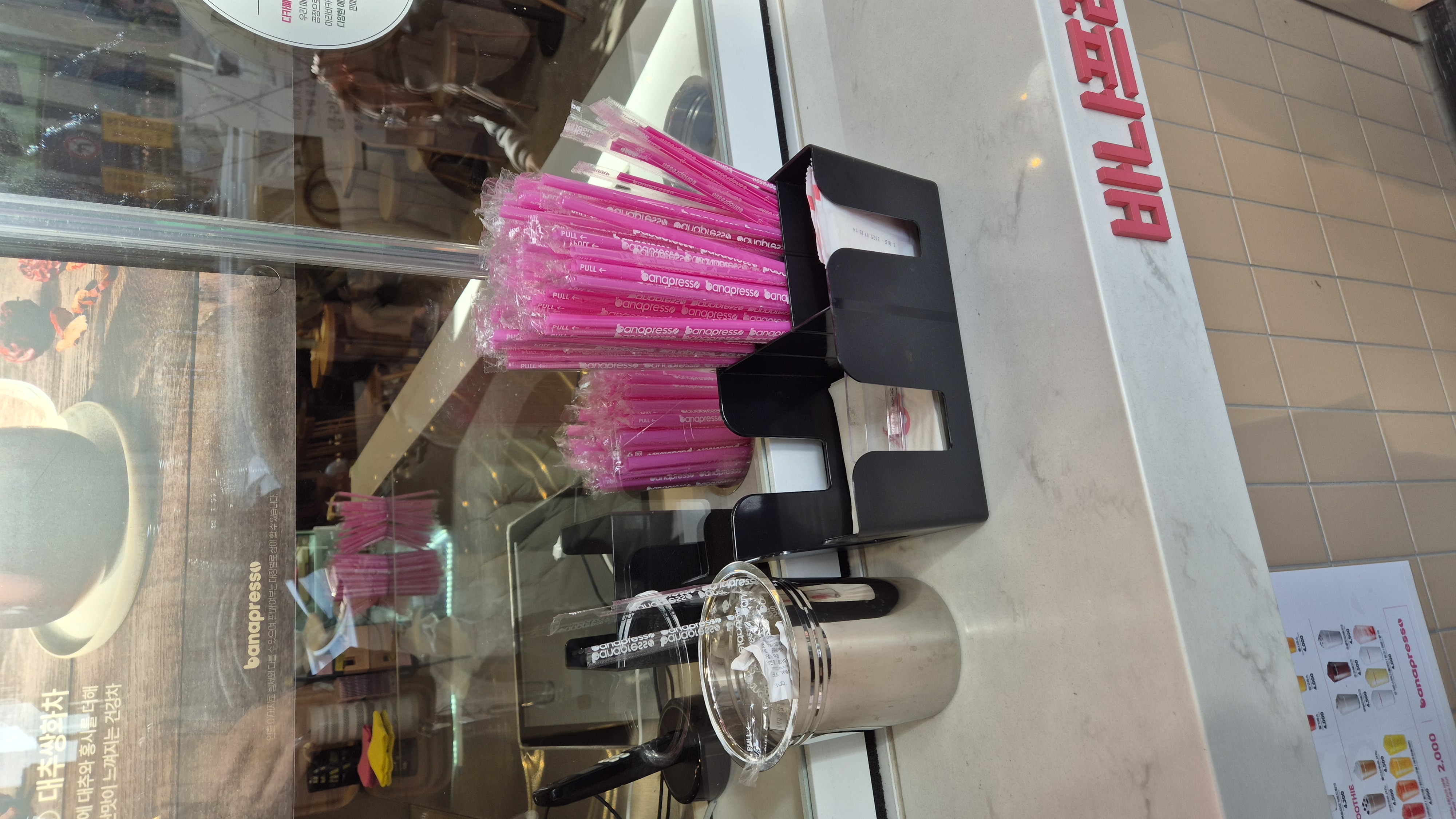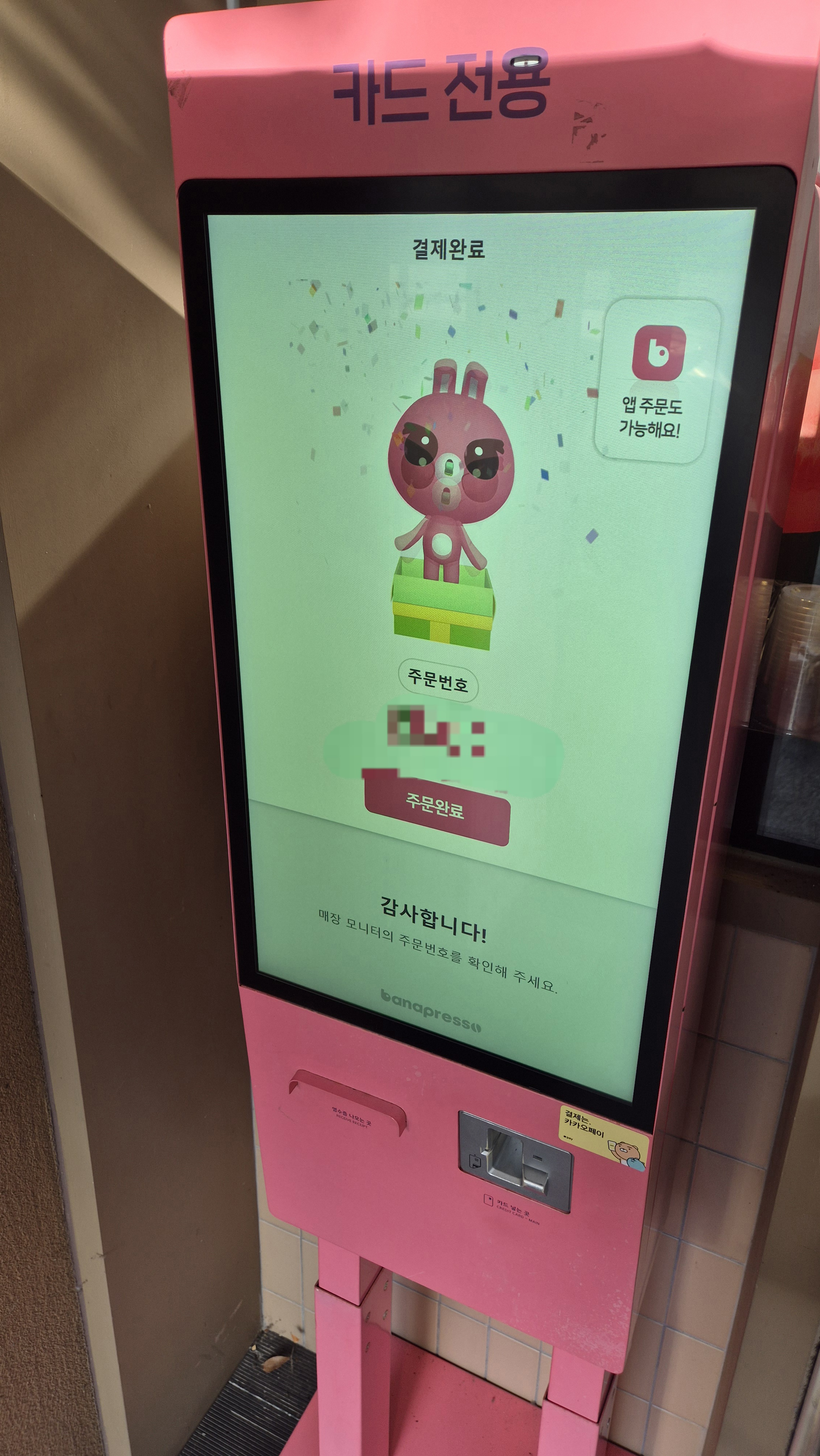 다나프레소 키오스크 역시 핫핑크 색깔입니다.