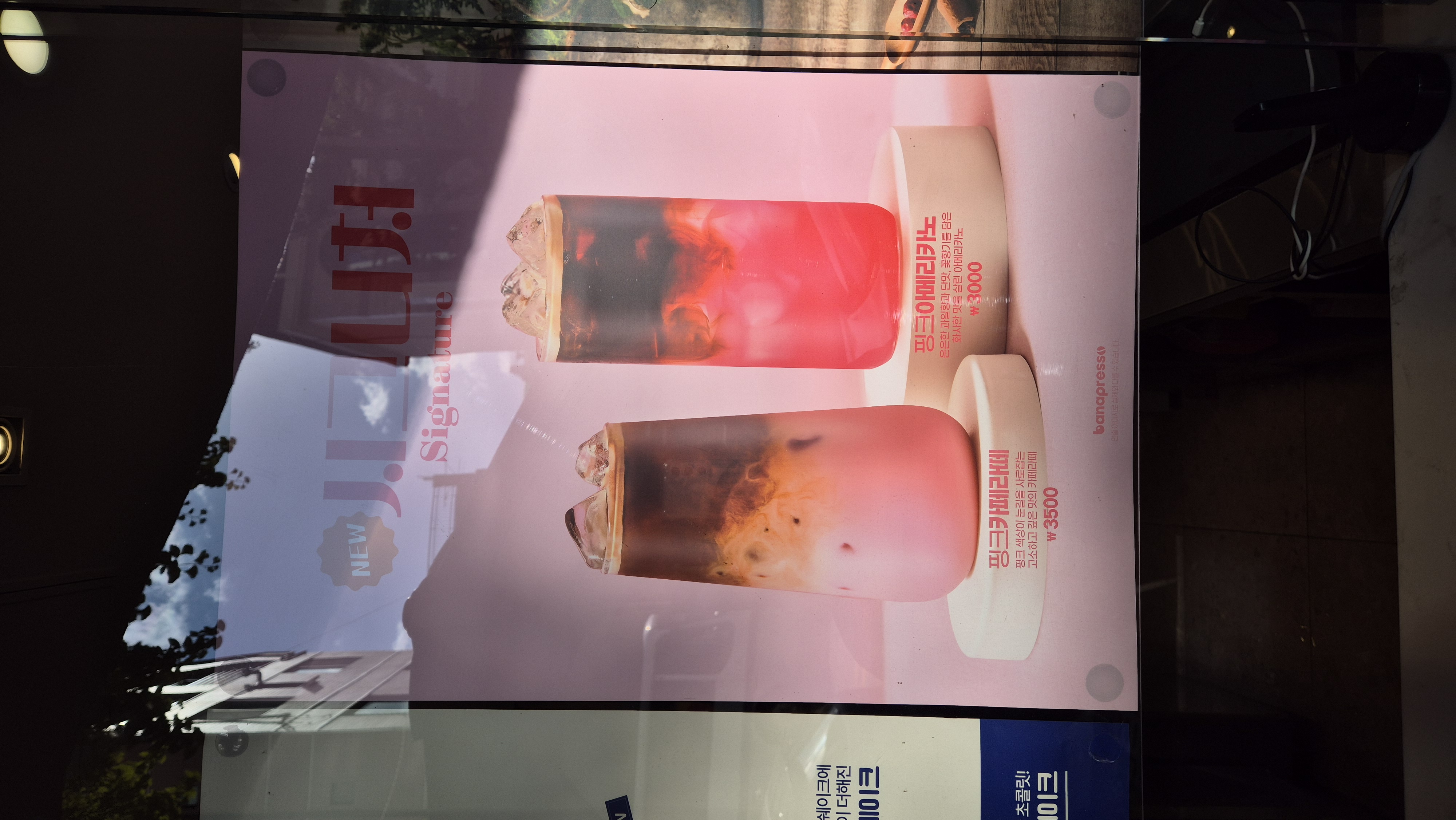 시그니처 음료 바나프레소 핑크 카페 라떼 1잔 가격은 3500원 솔직히 자기 저렴한 가격이죠.